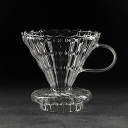 Воронка-дриппер выполнена из качественного стекла. Воронка предназначена для заваривания кофе методом медленного пролива горячей воды через бумажный фильтр с молотым кофейным порошком. Для использования нужно лишь установить воронку на чашку, вложить в воронку специальный бумажный фильтр, засыпать молотый кофе и медленно осуществить вливание горячей воды. Благодаря особой форме воронка создает идеальные условия для распределения тепла и сохранения более полного вкуса кофе. Бумажный фильтр в комплектацию НЕ входит. Диаметр воронки составляет 11,7 см.