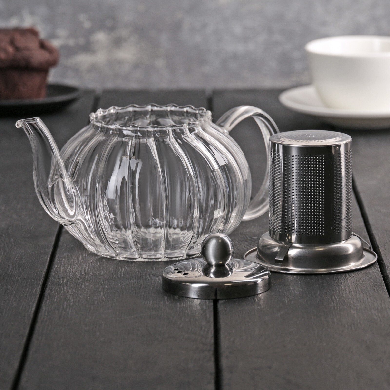 Красивый стеклянный заварочный чайник придётся по душе ценителям классики и модерна.