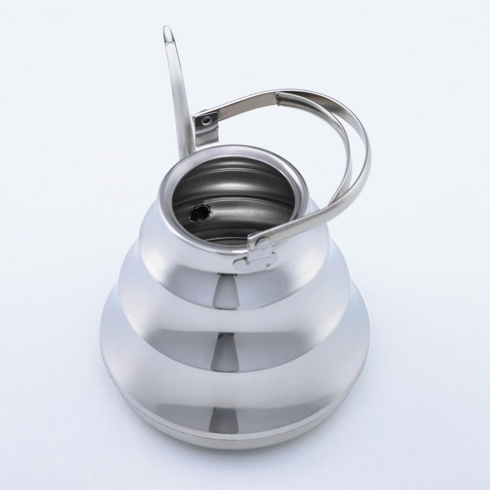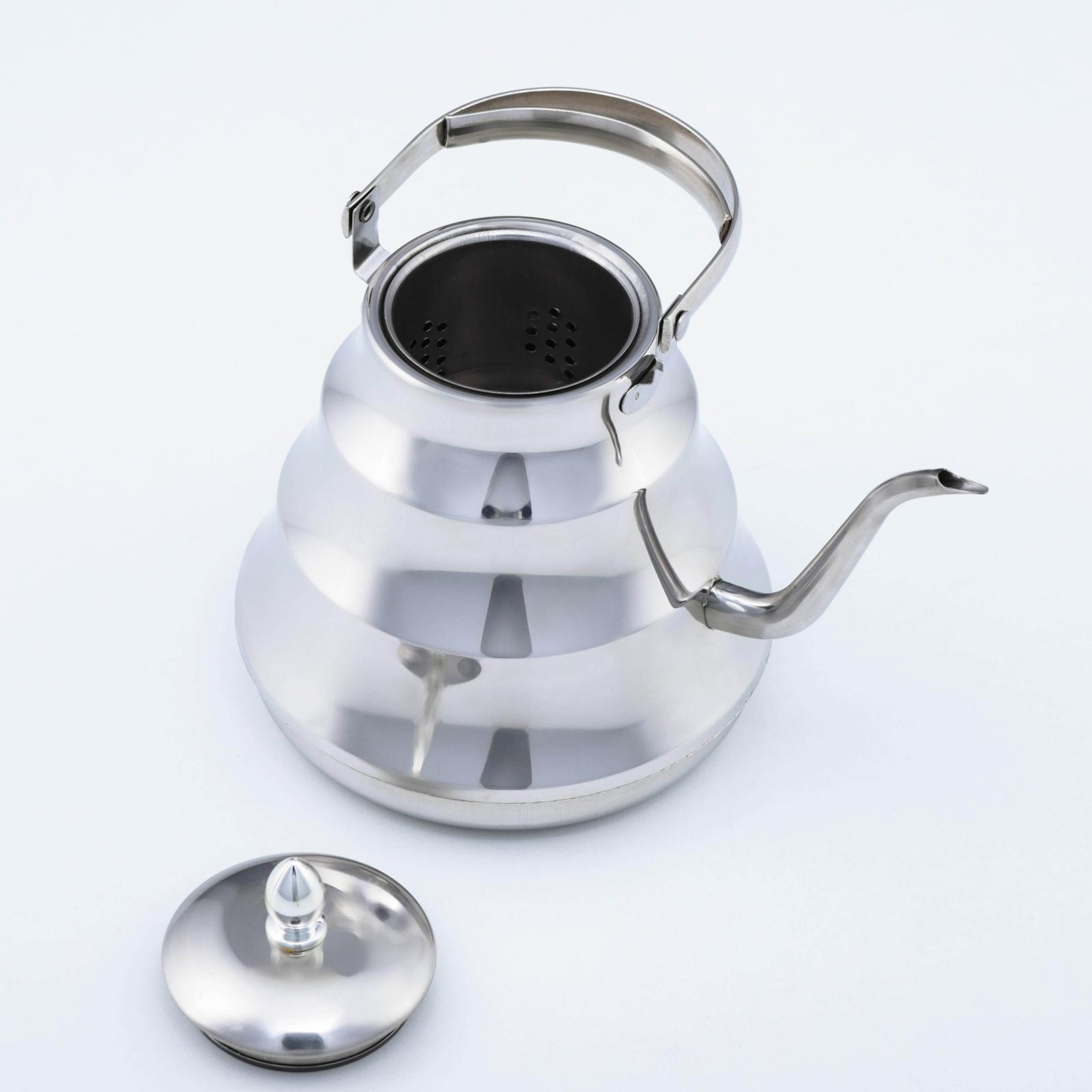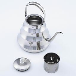Заварочный чайник изготовлен из высококачественной нержавеющей стали, имеет металлическое сито.
