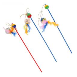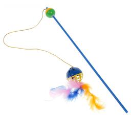 Удочка с погремушкой, бубенчиком и пером, Зооник, 37 см, микс