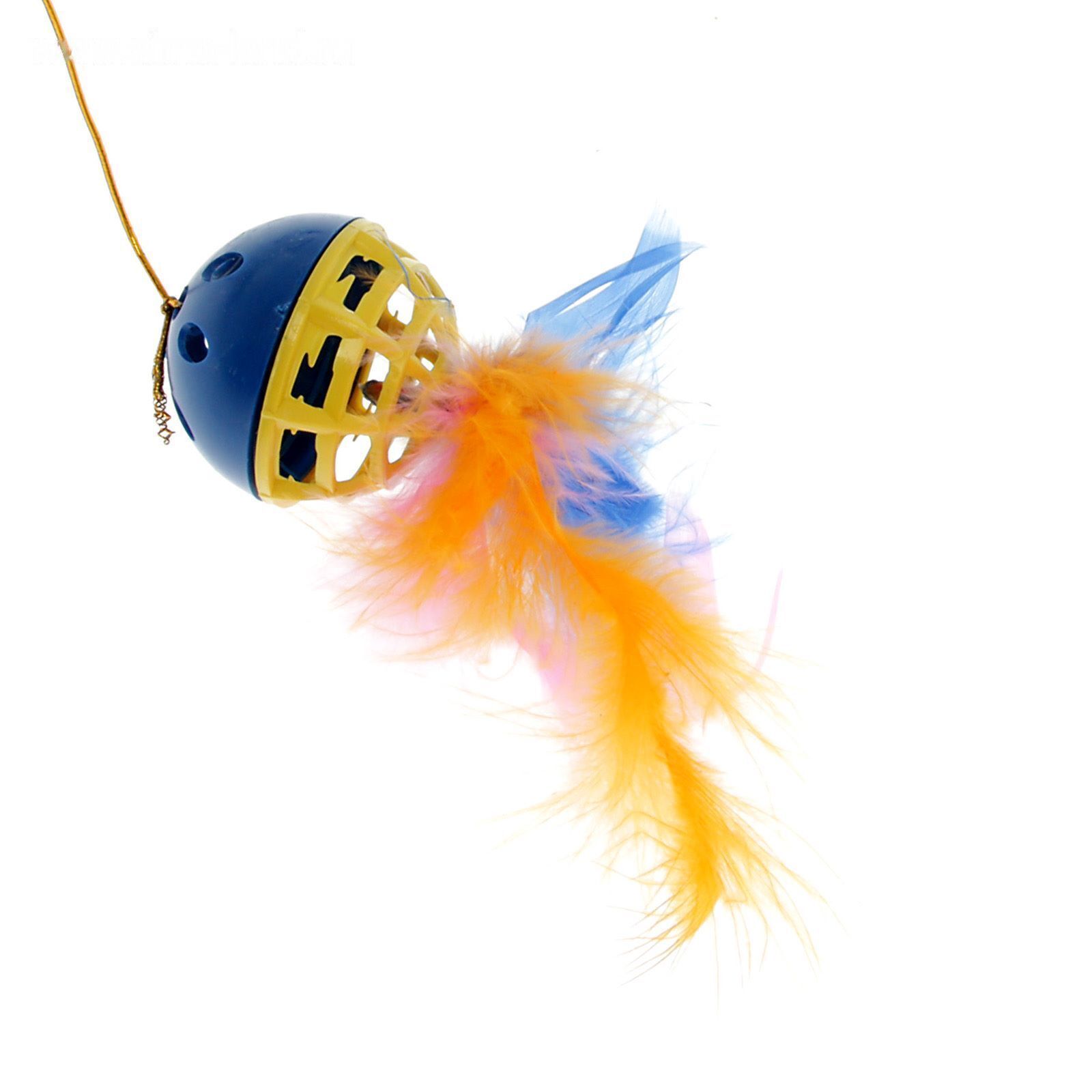 Удочка 37 см с погремушкой малой, бубенчиком и пером «Зооник». Яркая игрушка в виде погремушки малой, бубенчиком и пером на конце удочки сразу привлечет внимание вашего любимца.
