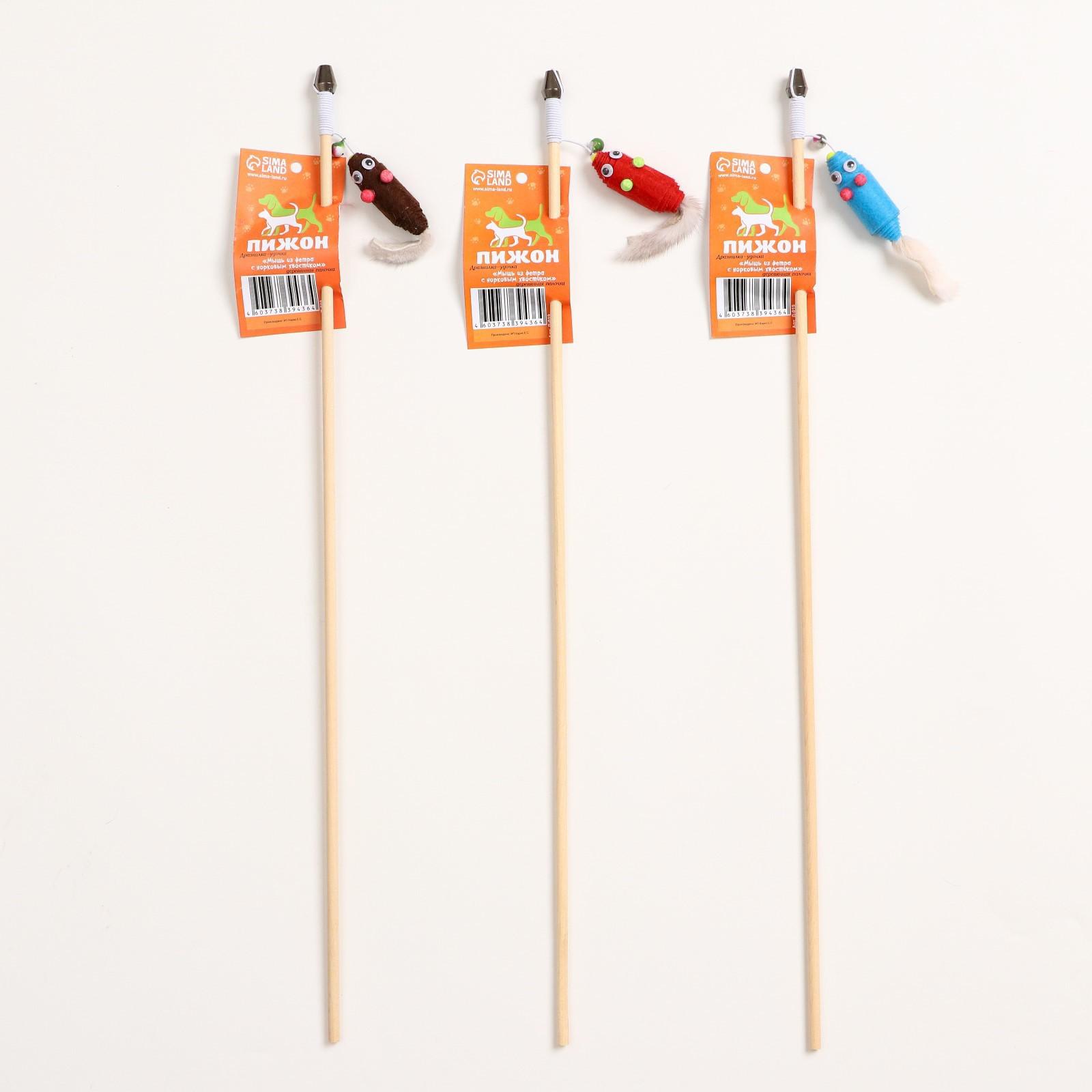 Дразнилка - удочка "Мышь из фетра с норковым хвостиком" на деревянной палочке, микс цветов