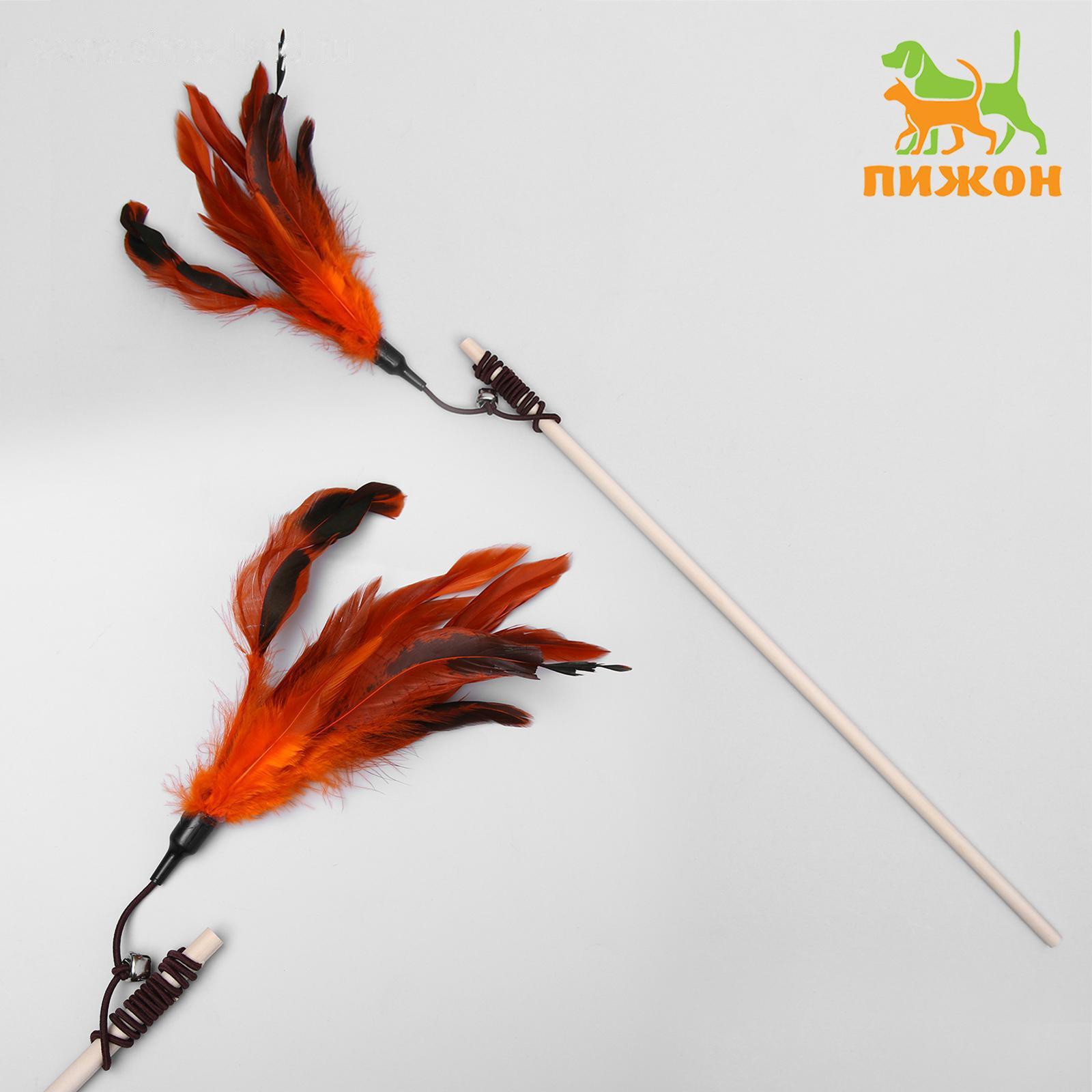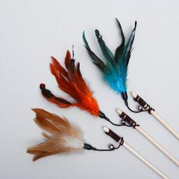 Дразнилка-удочка с перышками и бубенчиком, деревянная палочка 40 см, микс цветов