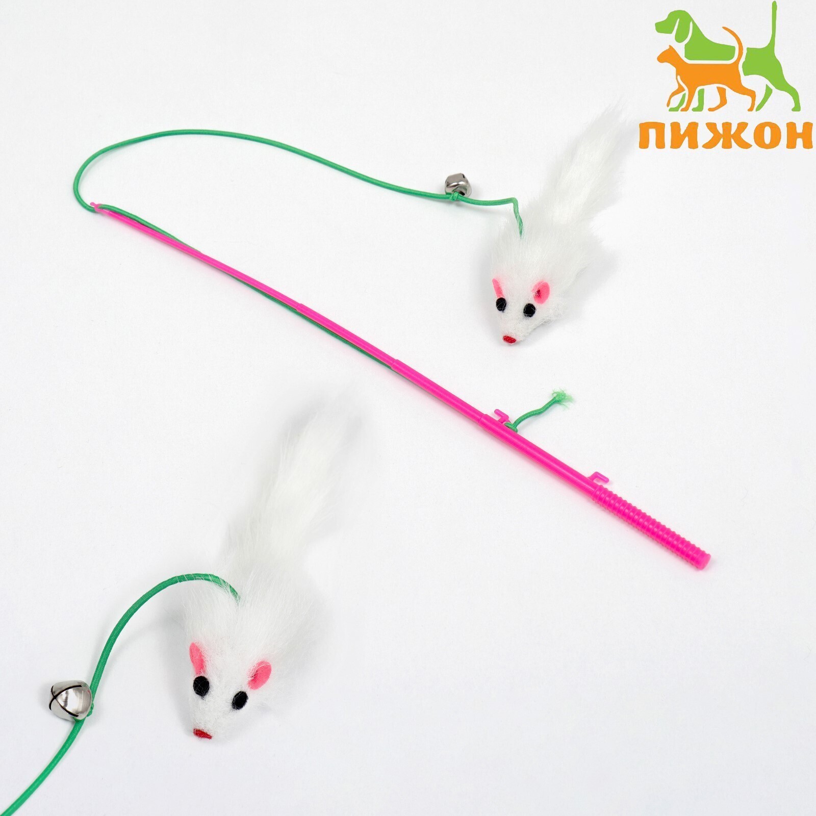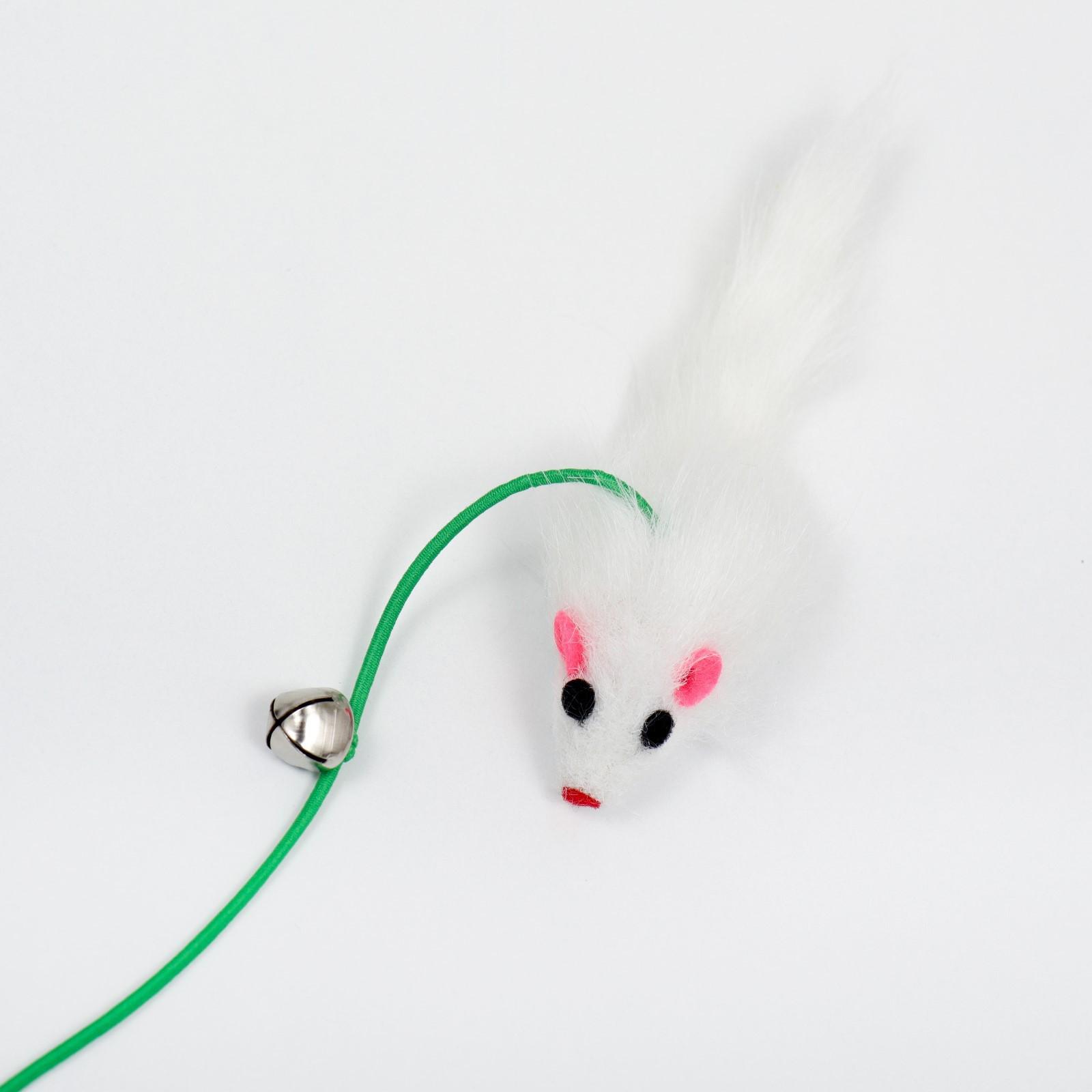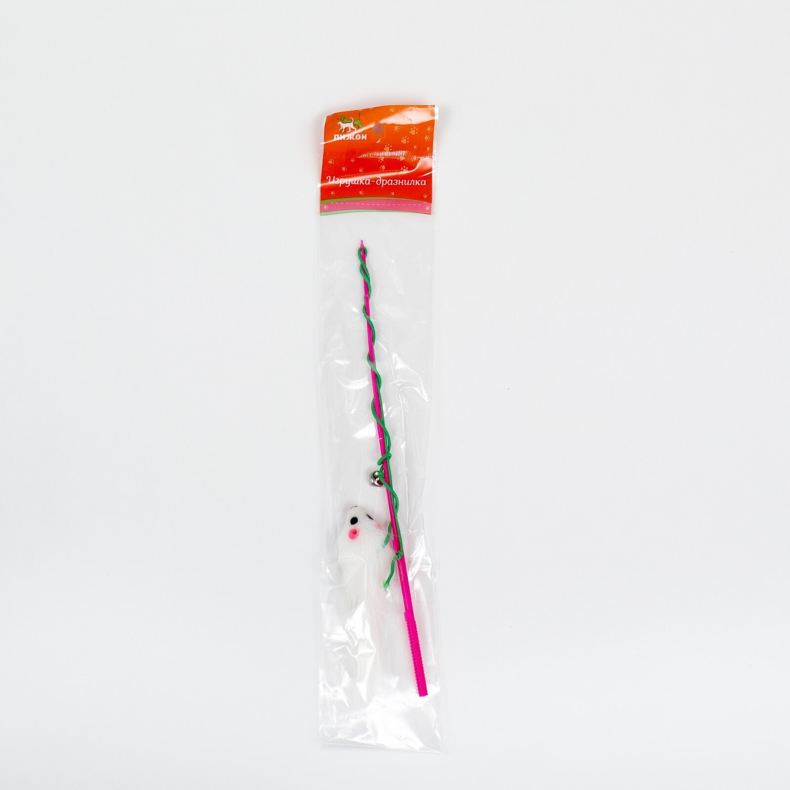 Дразнилка-удочка "Мышонок" с белой мышью на розовой ручке
