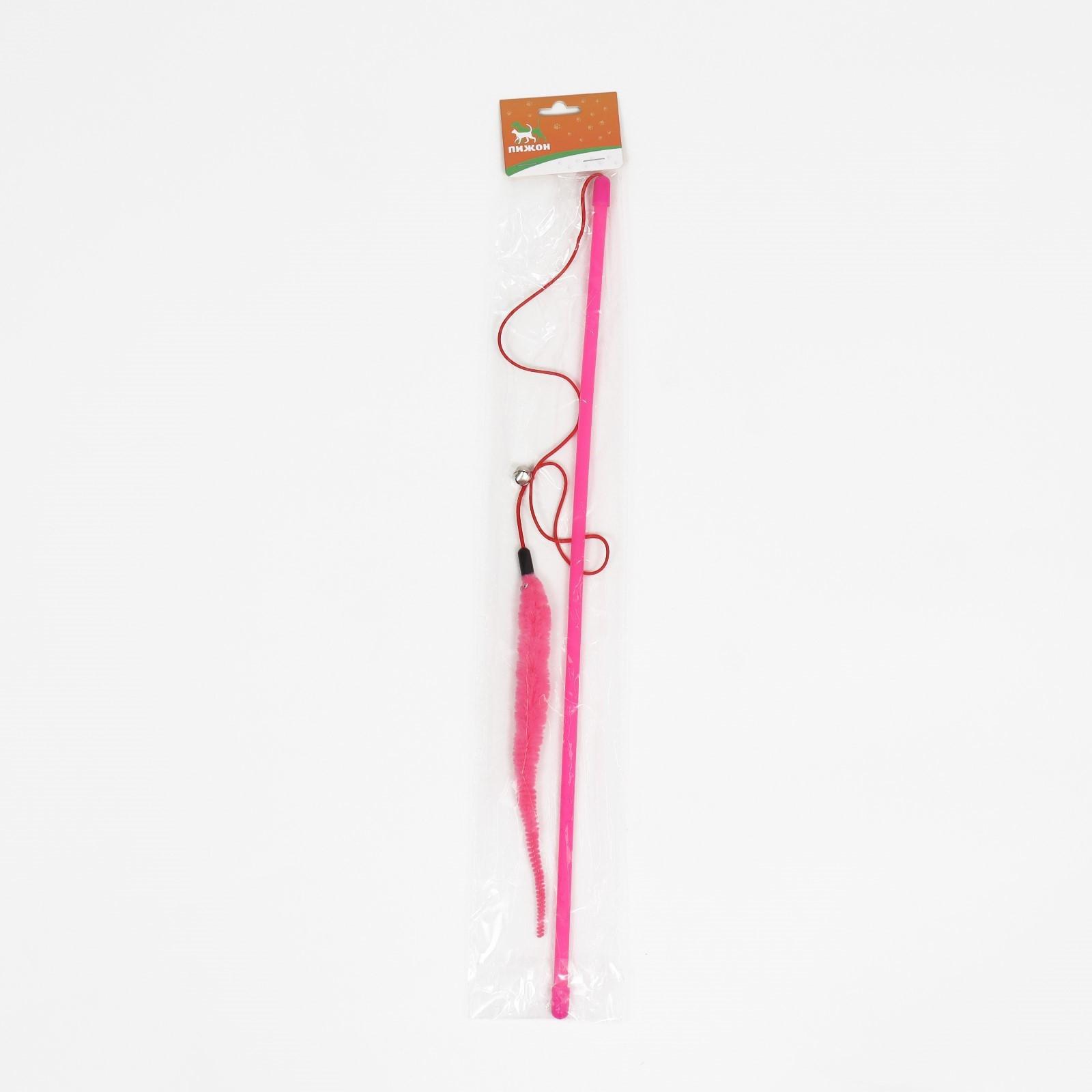Дразнилка-удочка "Змейка" с бубенчиком, розовая на розовой ручке