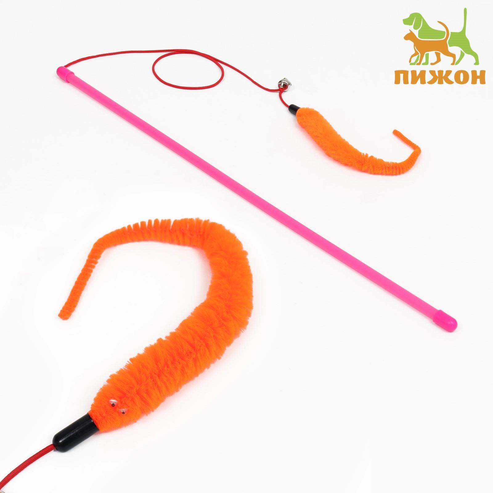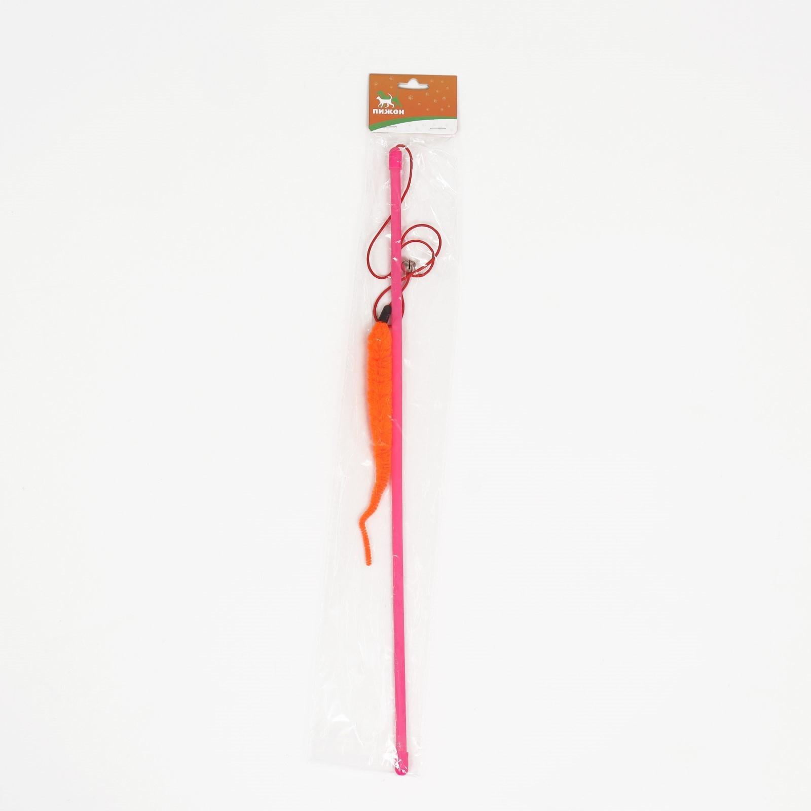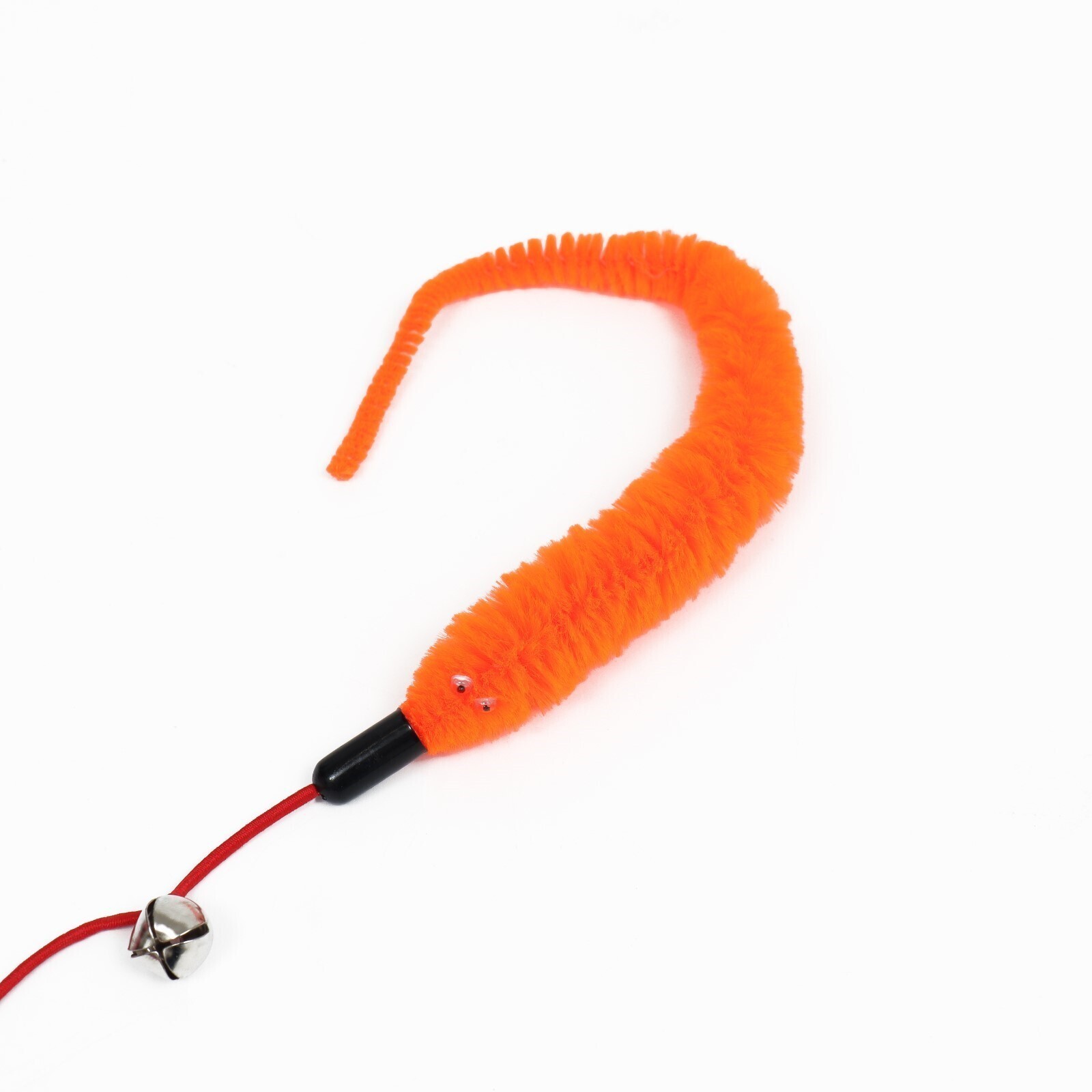 Дразнилка-удочка "Змейка" с бубенчиком, оранжевая на розовой ручке