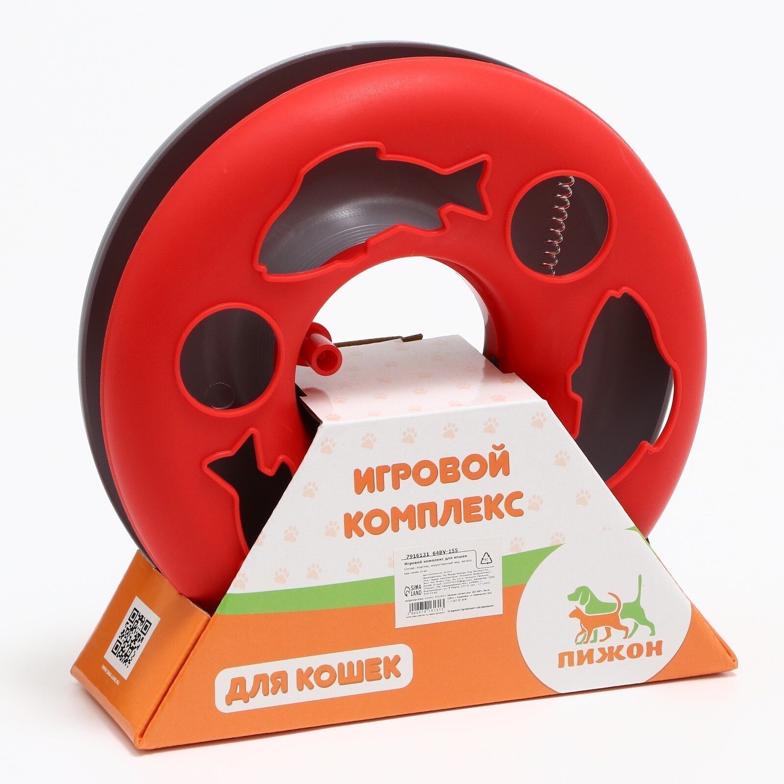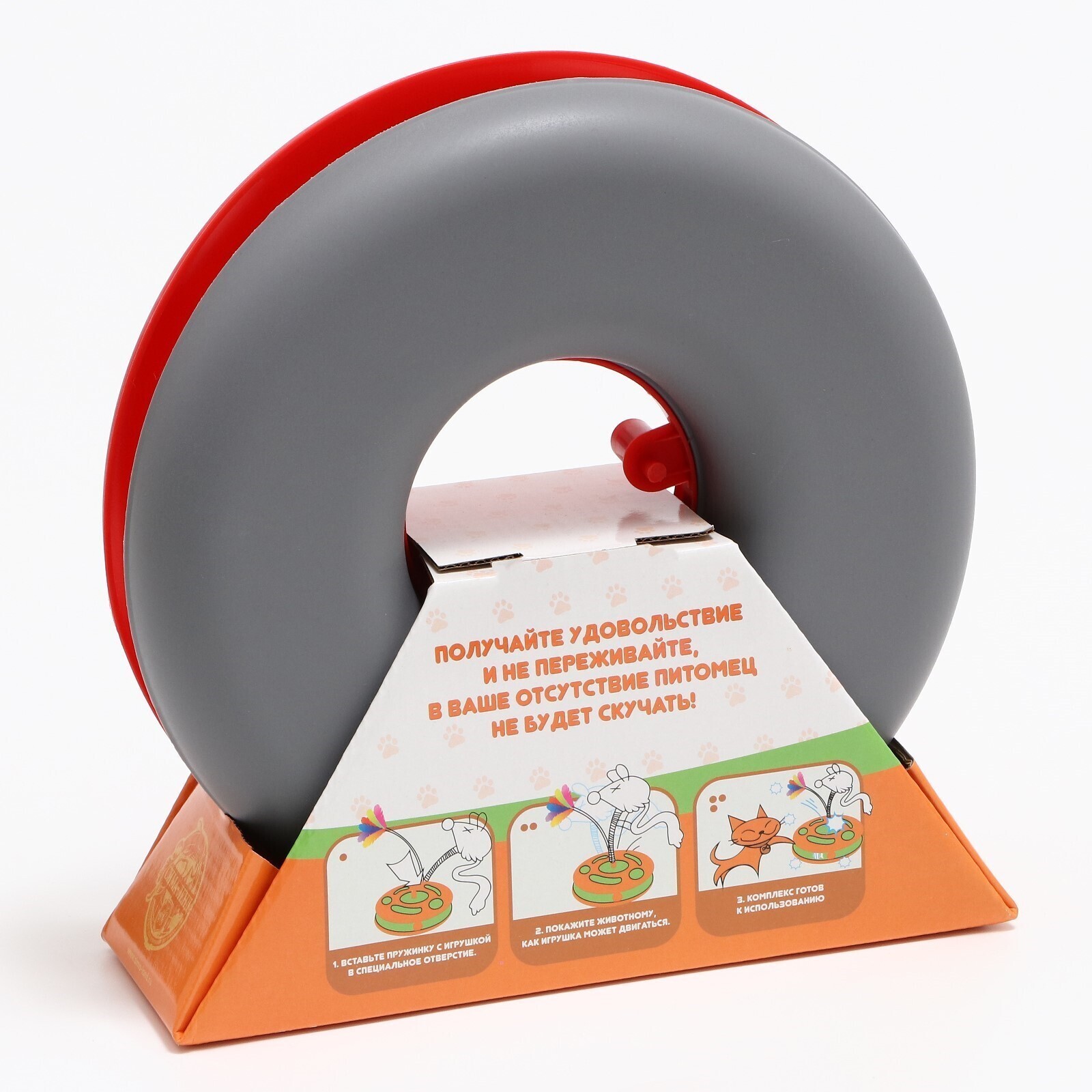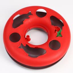 Игрушка для кошек "Загадочный круг - Рыбки", мышь на пружине и шарик, 23х7 см,красная/серая