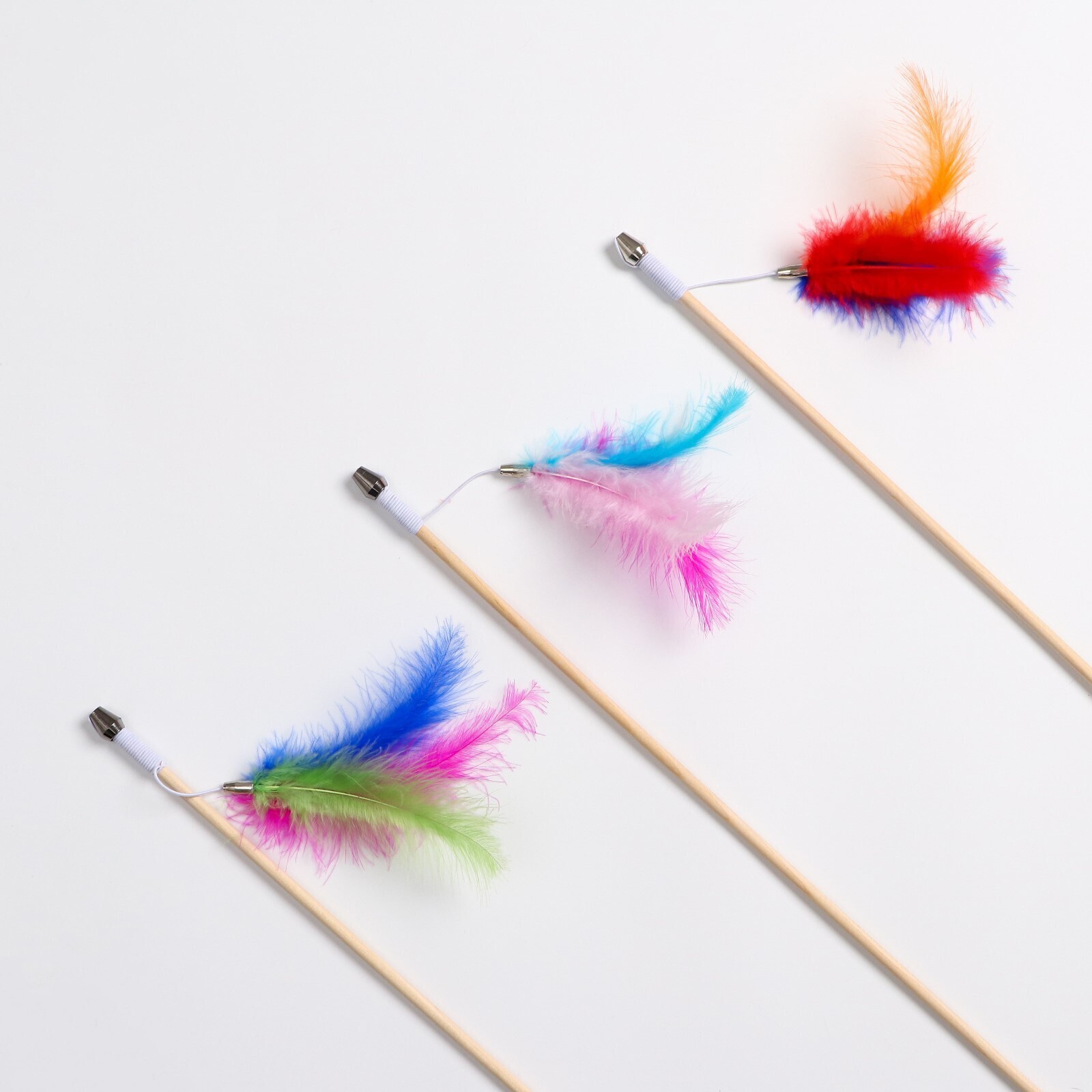 Дразнилка - удочка "Радужные перья" на деревянной палочке, микс цветов