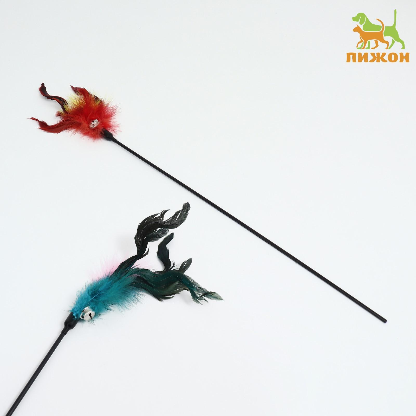 Дразнилка "Перышко" с бубенчиком, 65 см, микс цветов
