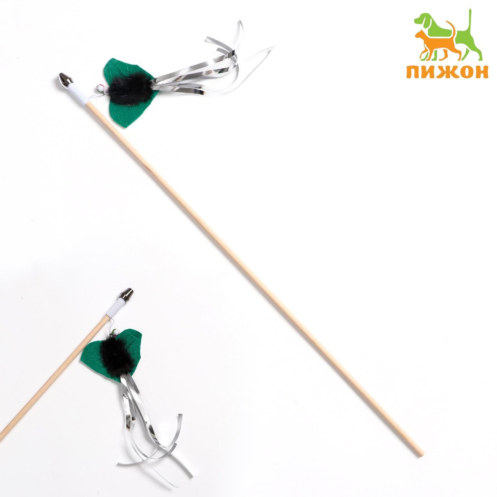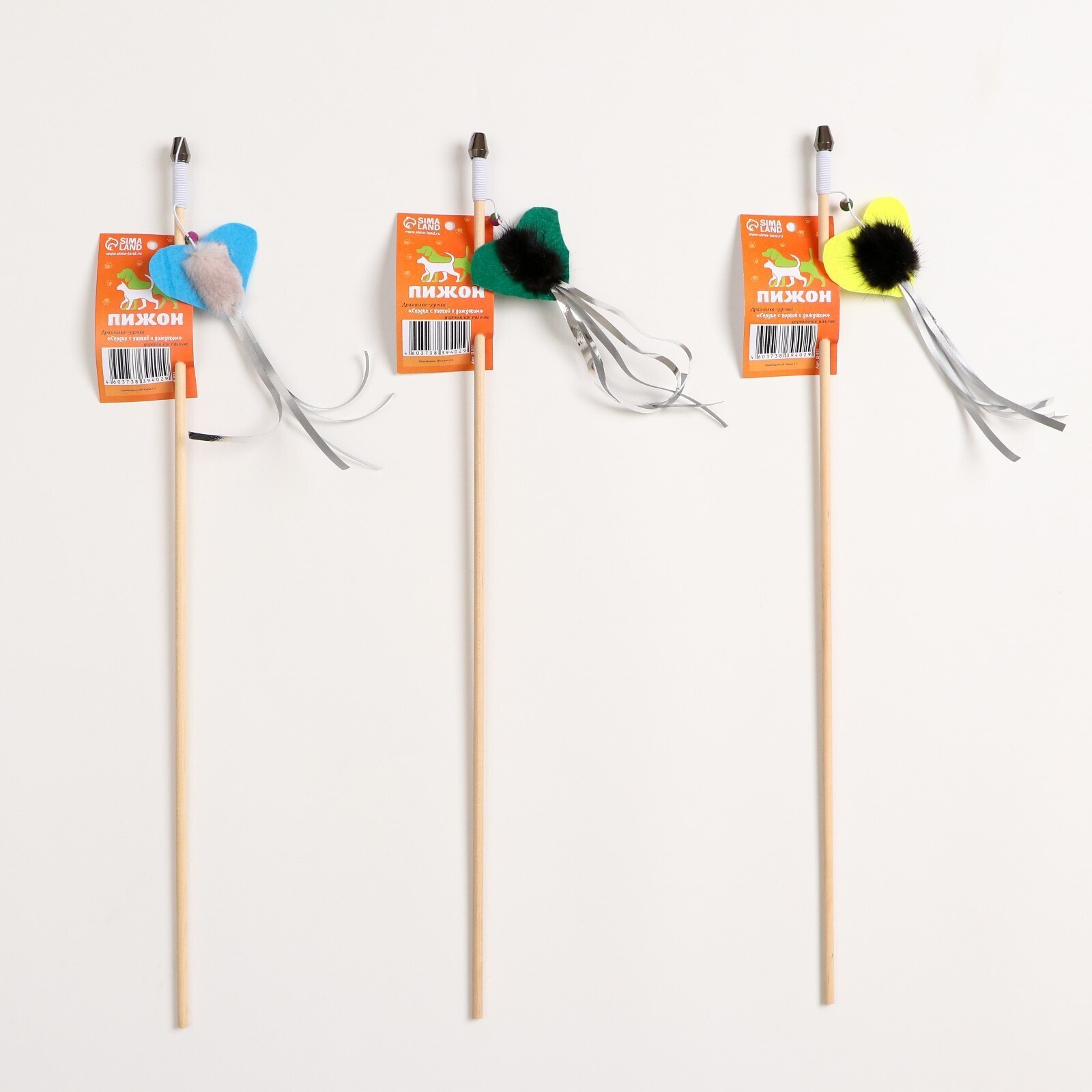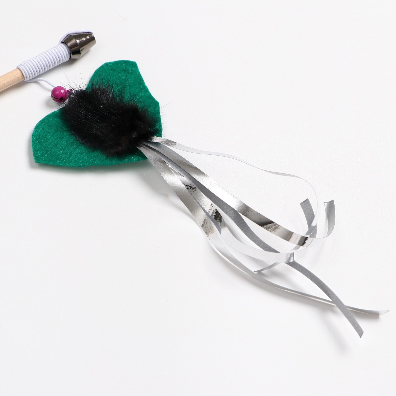 Дразнилка - удочка "Сердце с норкой и дождиком" на деревянной палочке, микс цветов