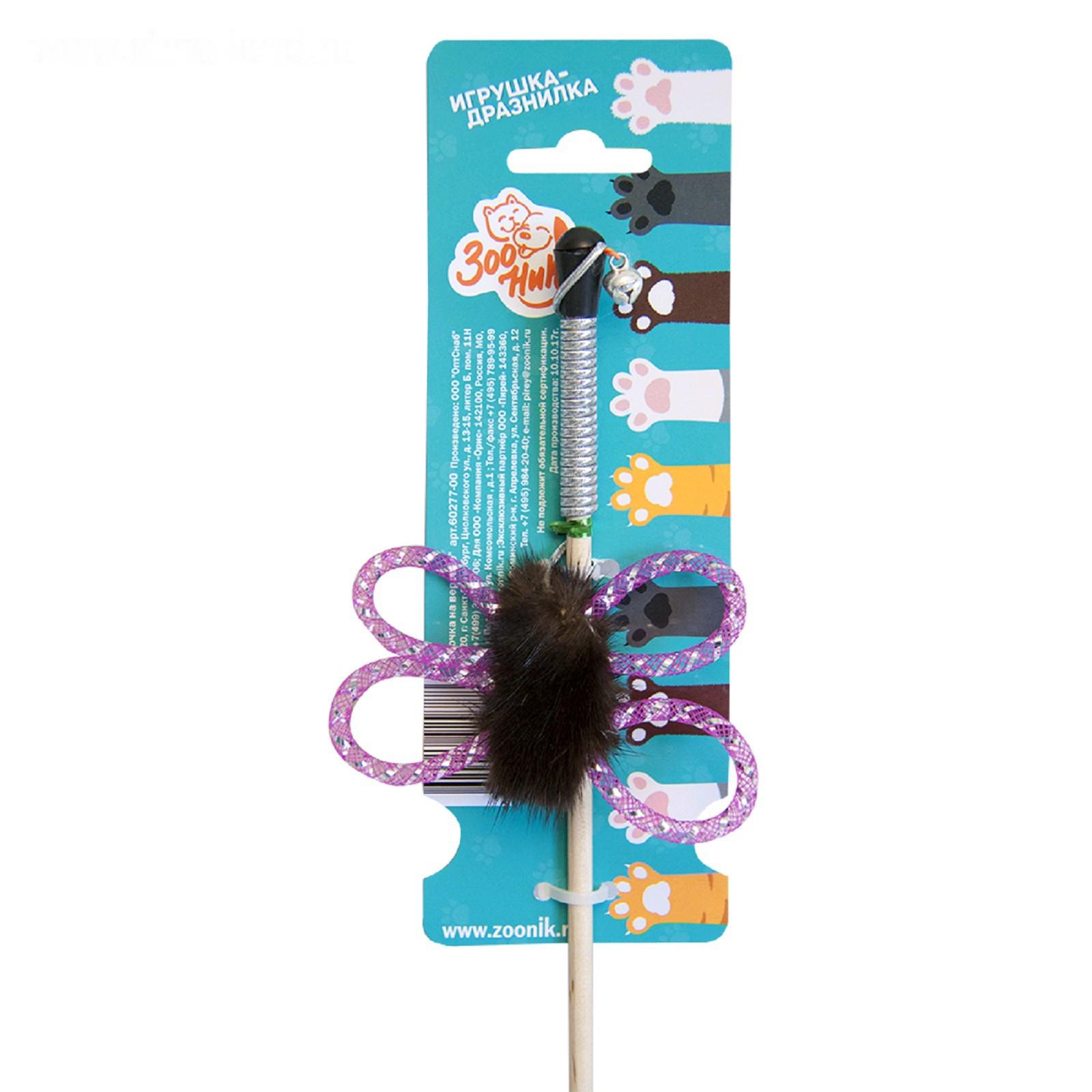 Дразнилка-удочка для кошек "Зооник" "Бабочка", 50 см, натуральный мех, микс цветов