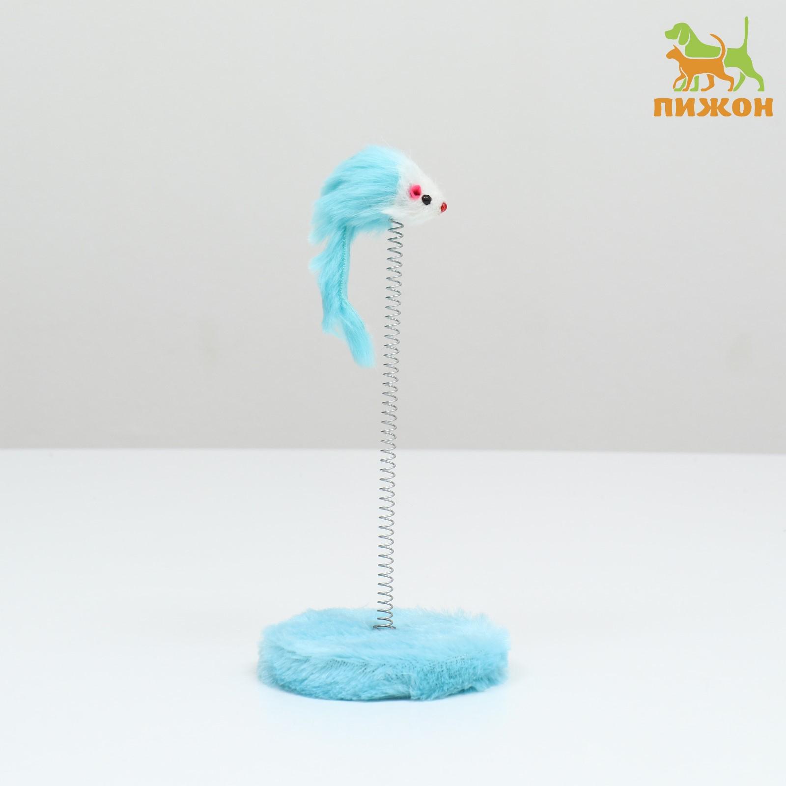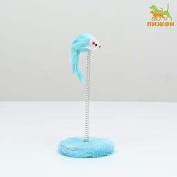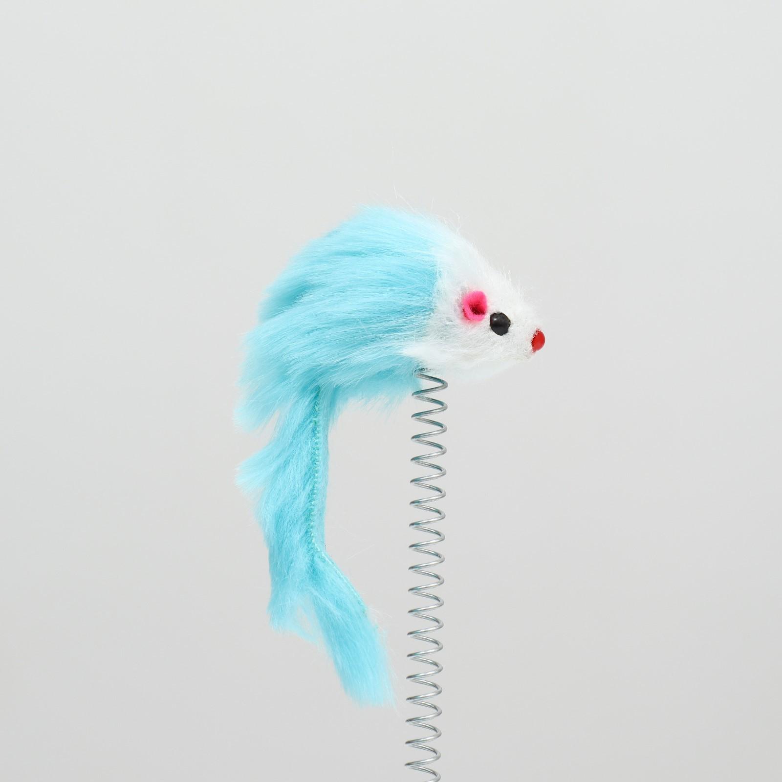Дразнилка для кошек на пружине с мышью (5 см), 10,5 х 23 см, голубая