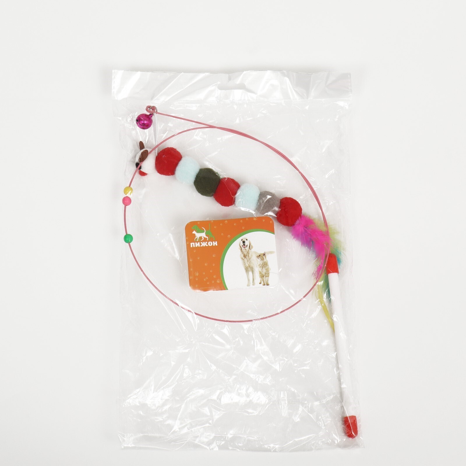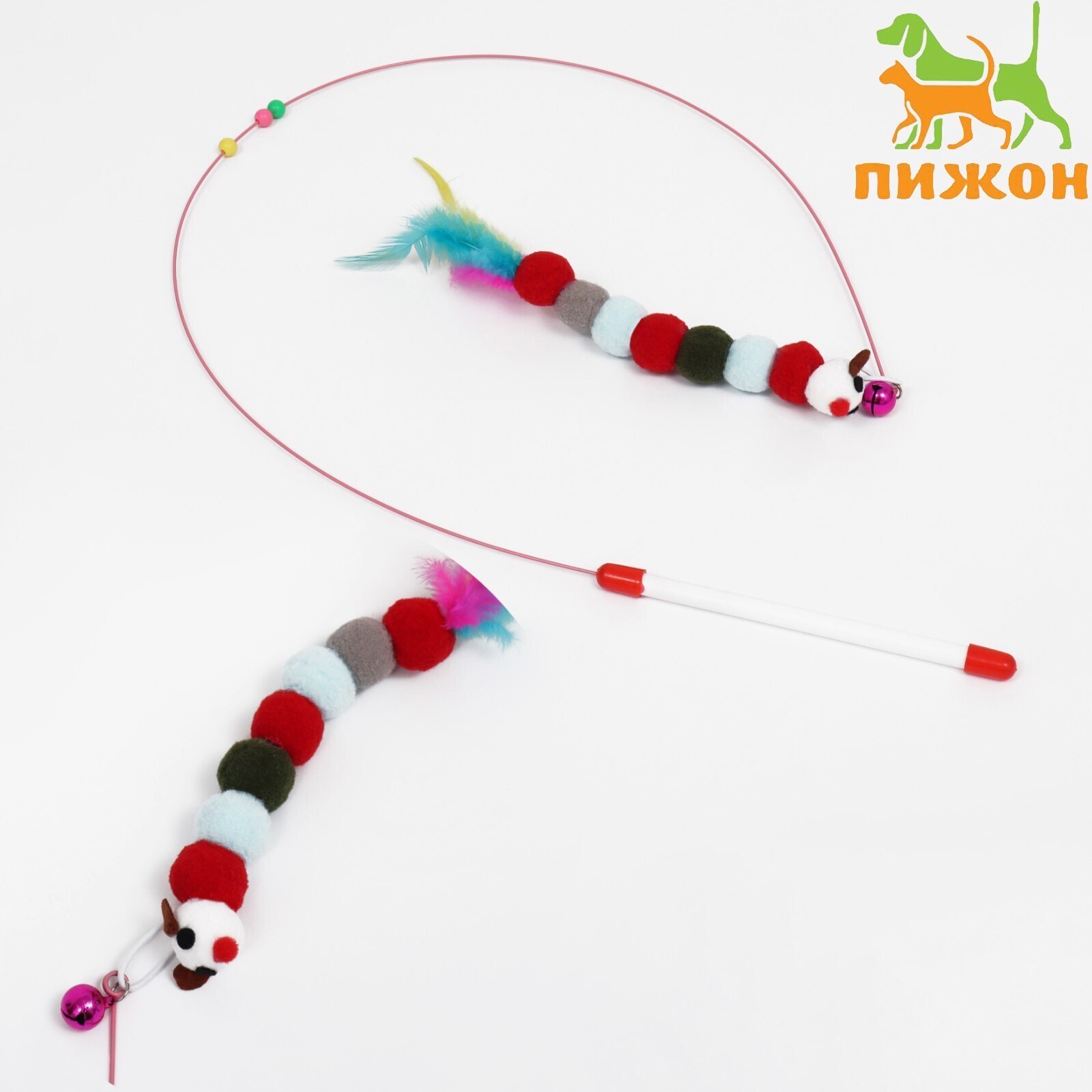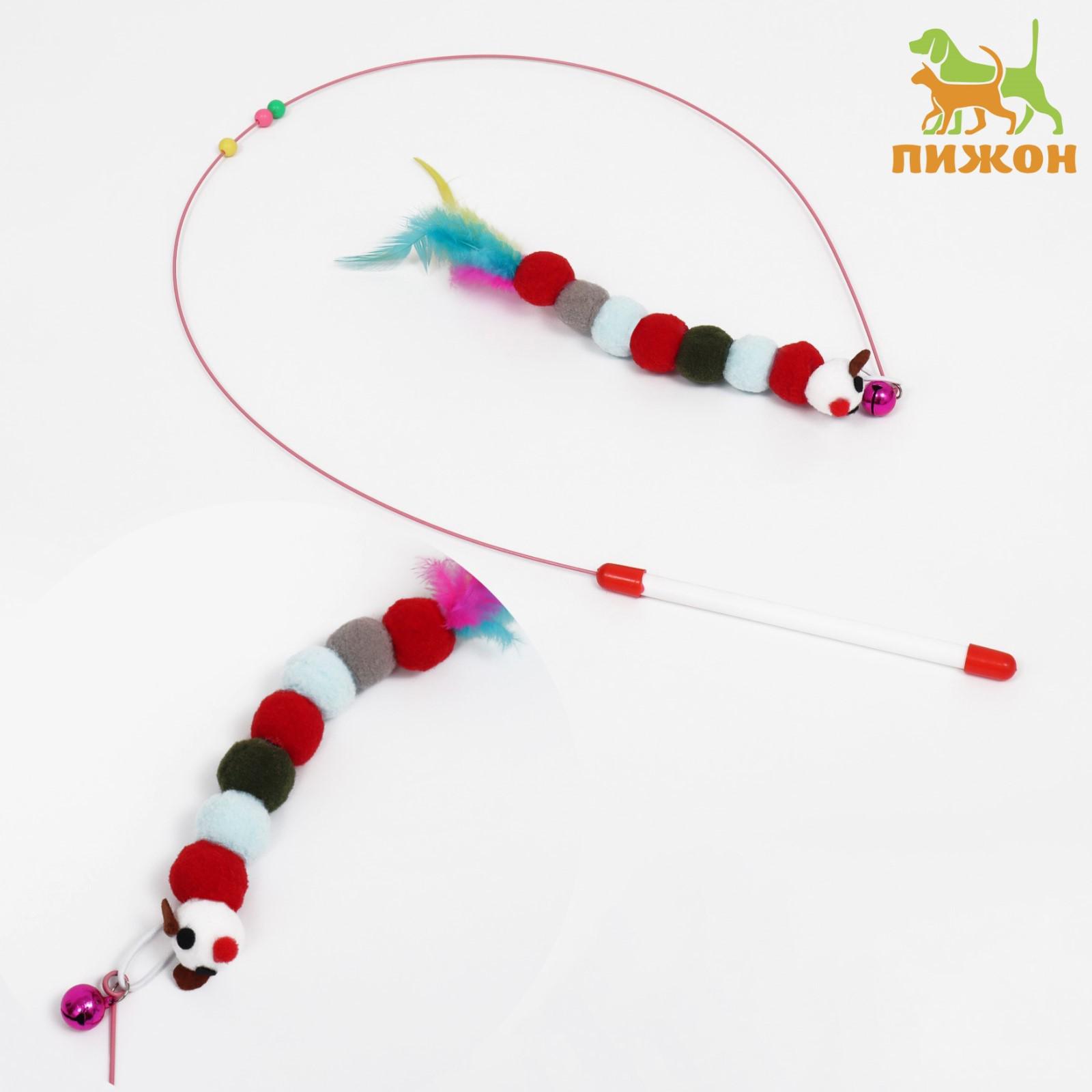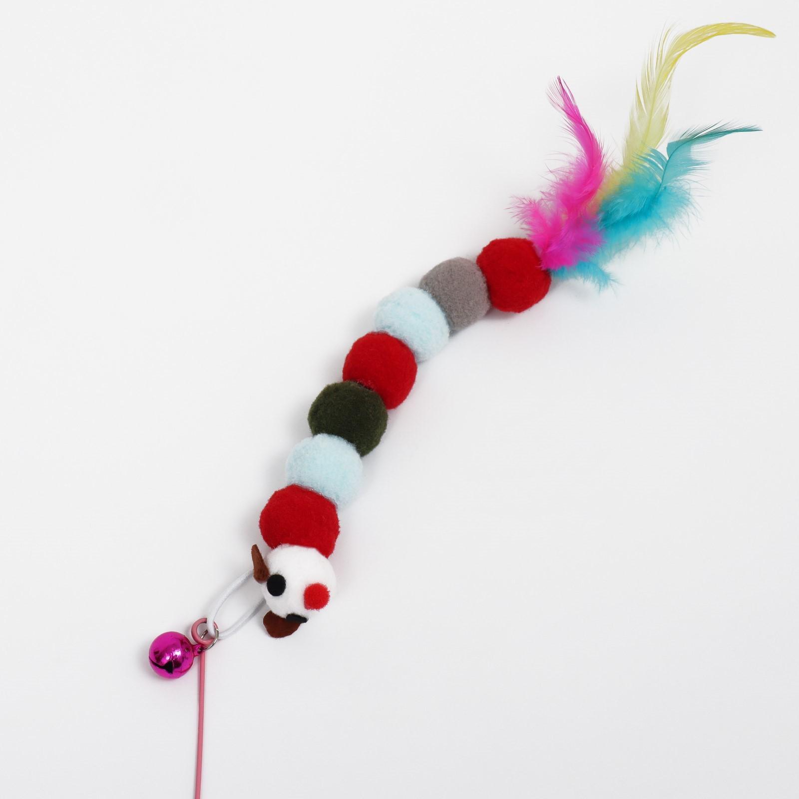 Дразнилка-удочка "Гусеница с перьями разноцветная", стальная проволока, 110 см, микс цветов 78063005