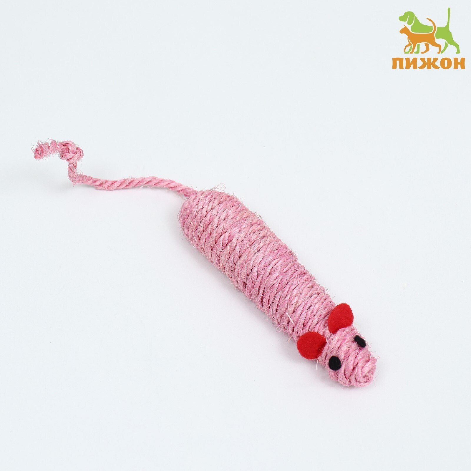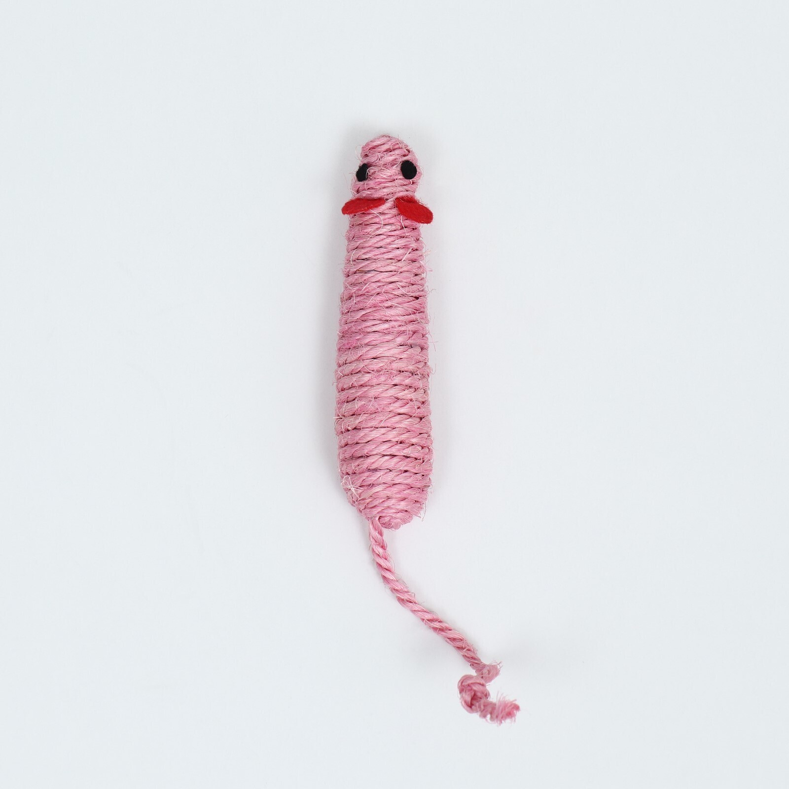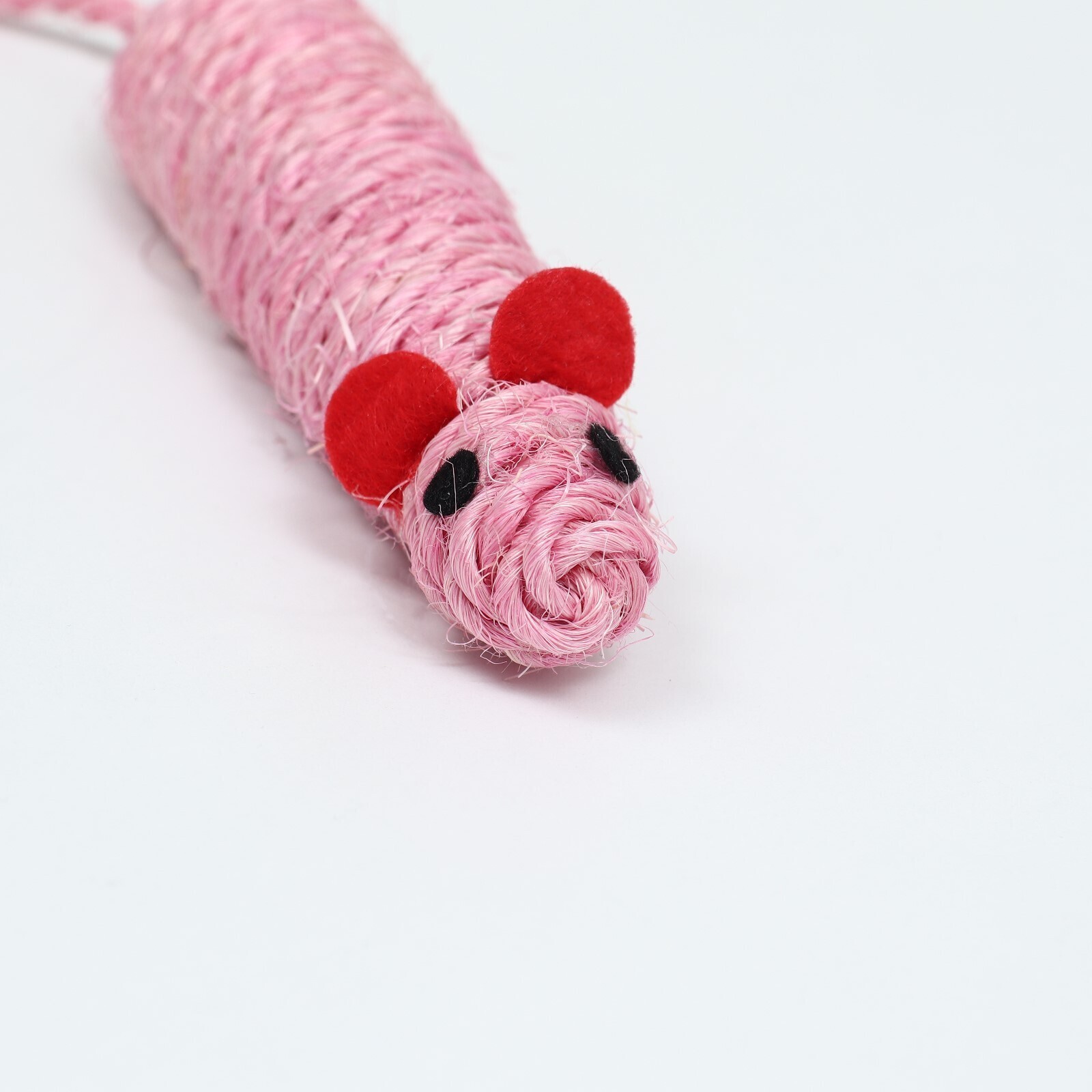 Игрушка сизалевая "Длинная мышь", 14,5 см, розовая
