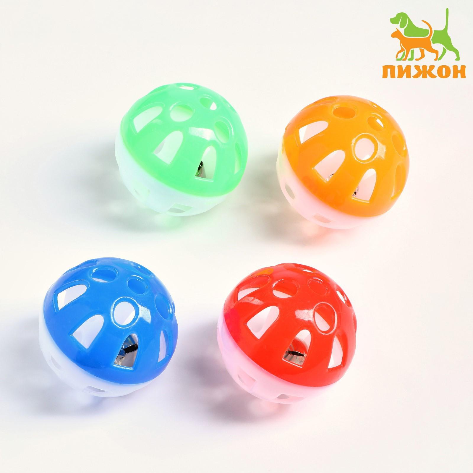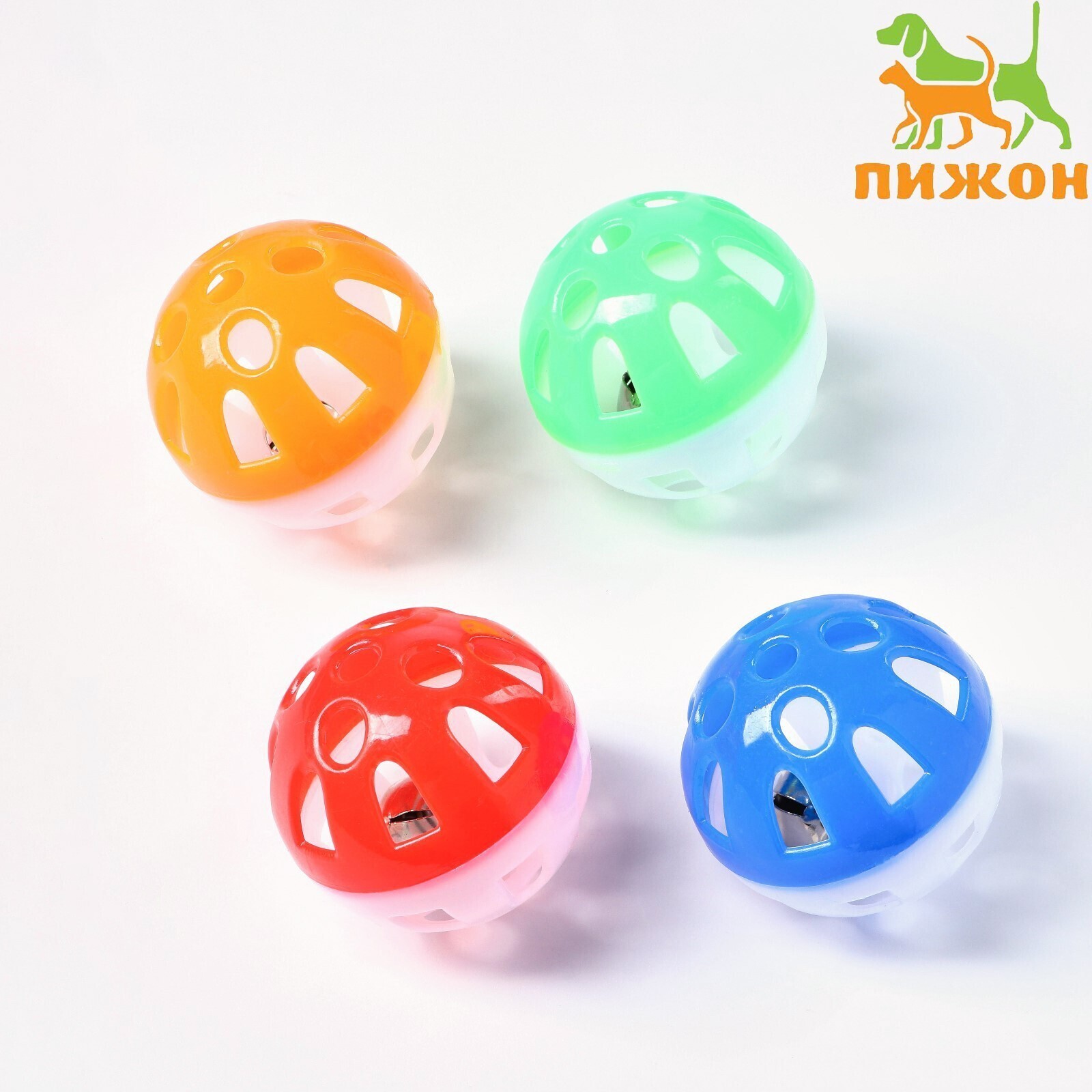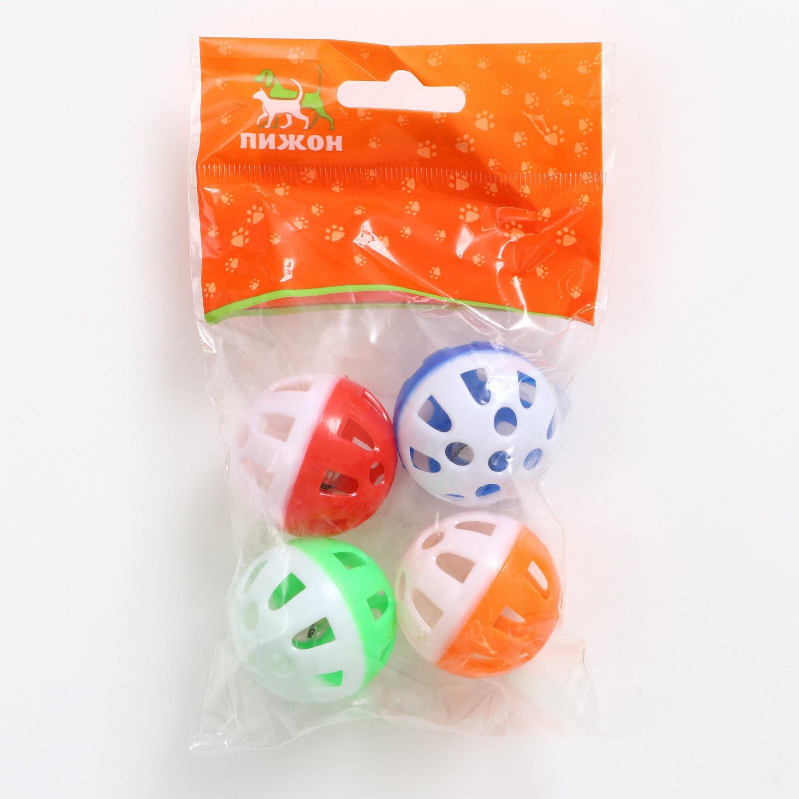 Набор из 4 шариков (диаметр шарика 4 см) с бубенчиком для кошек, разноцветный