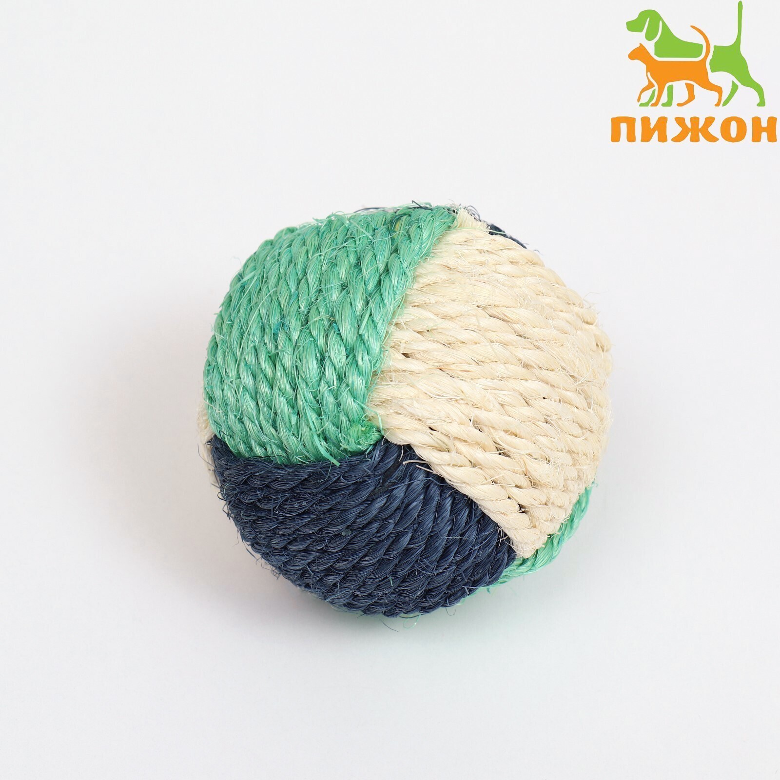 Шарик переплетеный из сизали, 6 см, белый/синий/зелёный