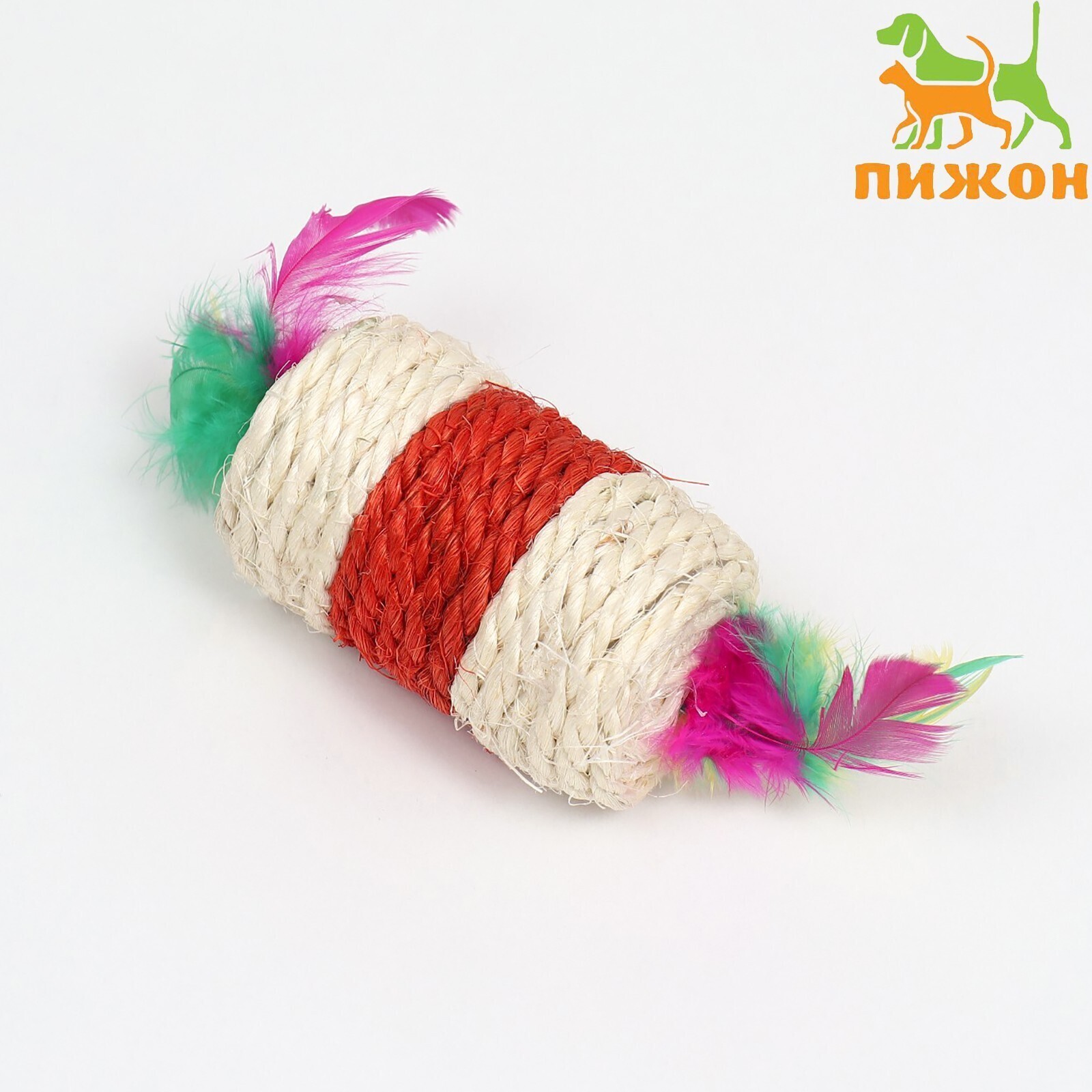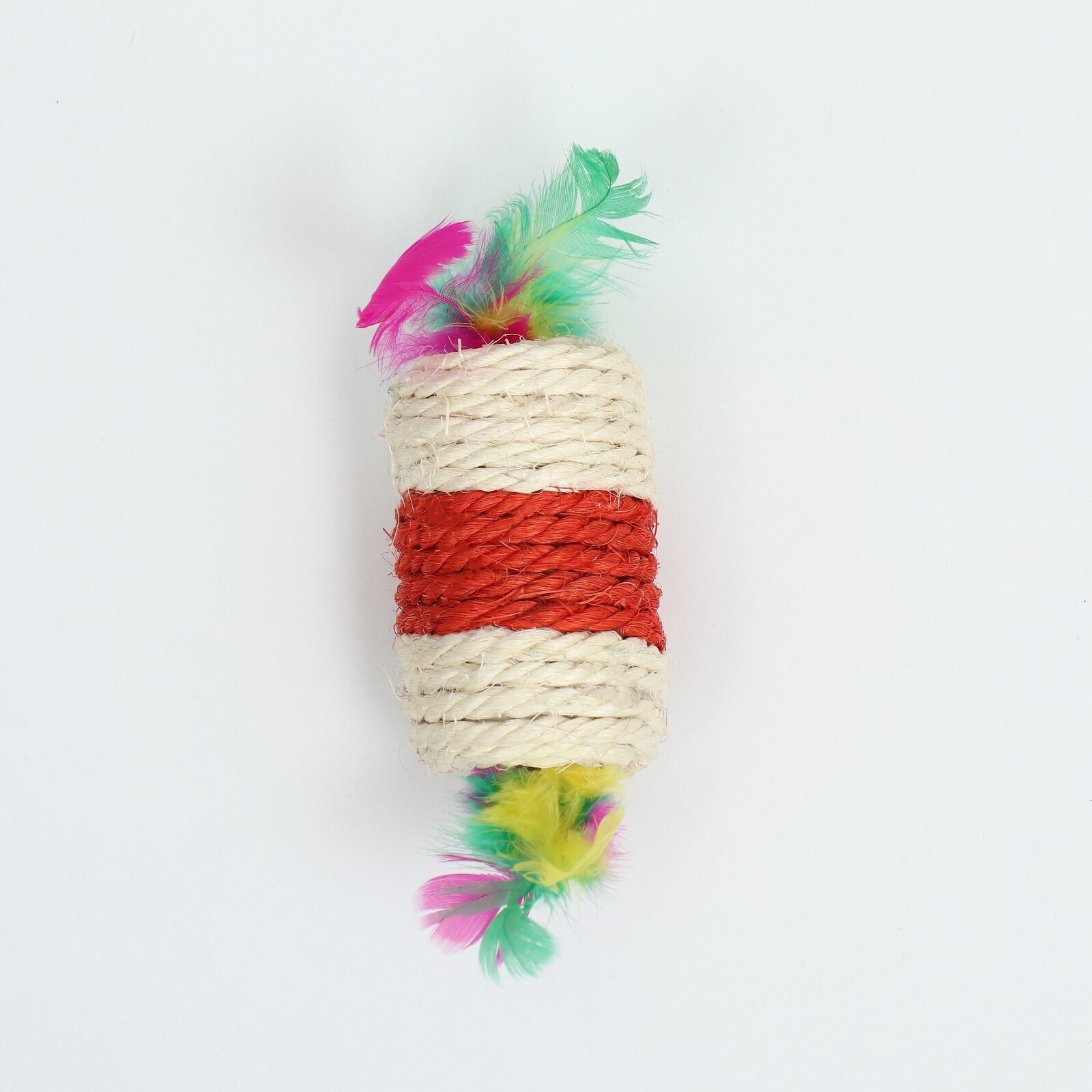 Игрушка-погремушка сизалевая "Конфетка", 6,5 х 3,5 см, белая/красная