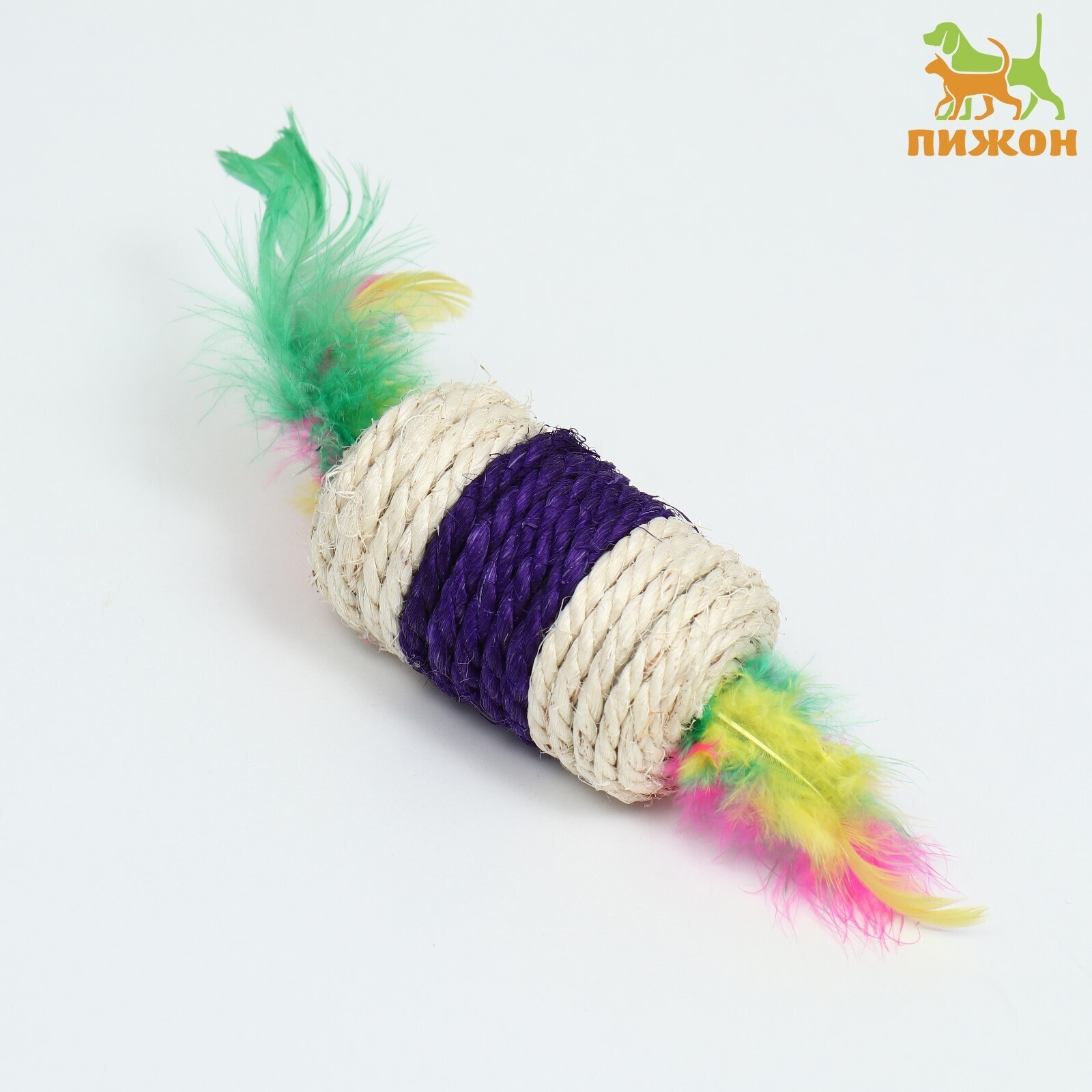Игрушка-погремушка сизалевая "Конфетка", 6,5 х 3,5 см, белая/фиолетовая