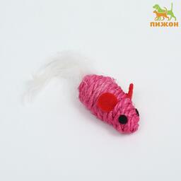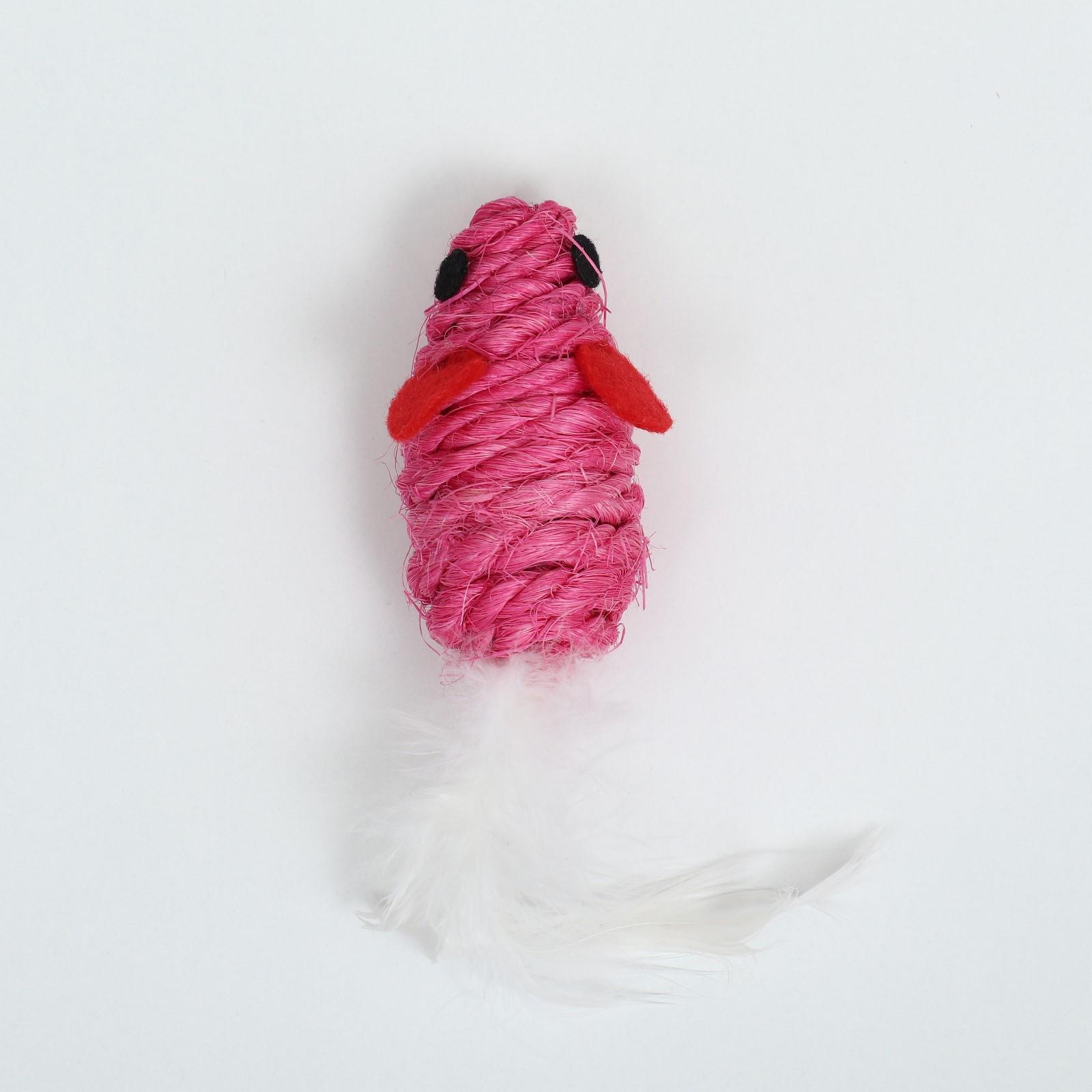 Игрушка для кошек "Мышь сизалевая малая" с меховым хвостом, 5,5 см, розовая