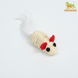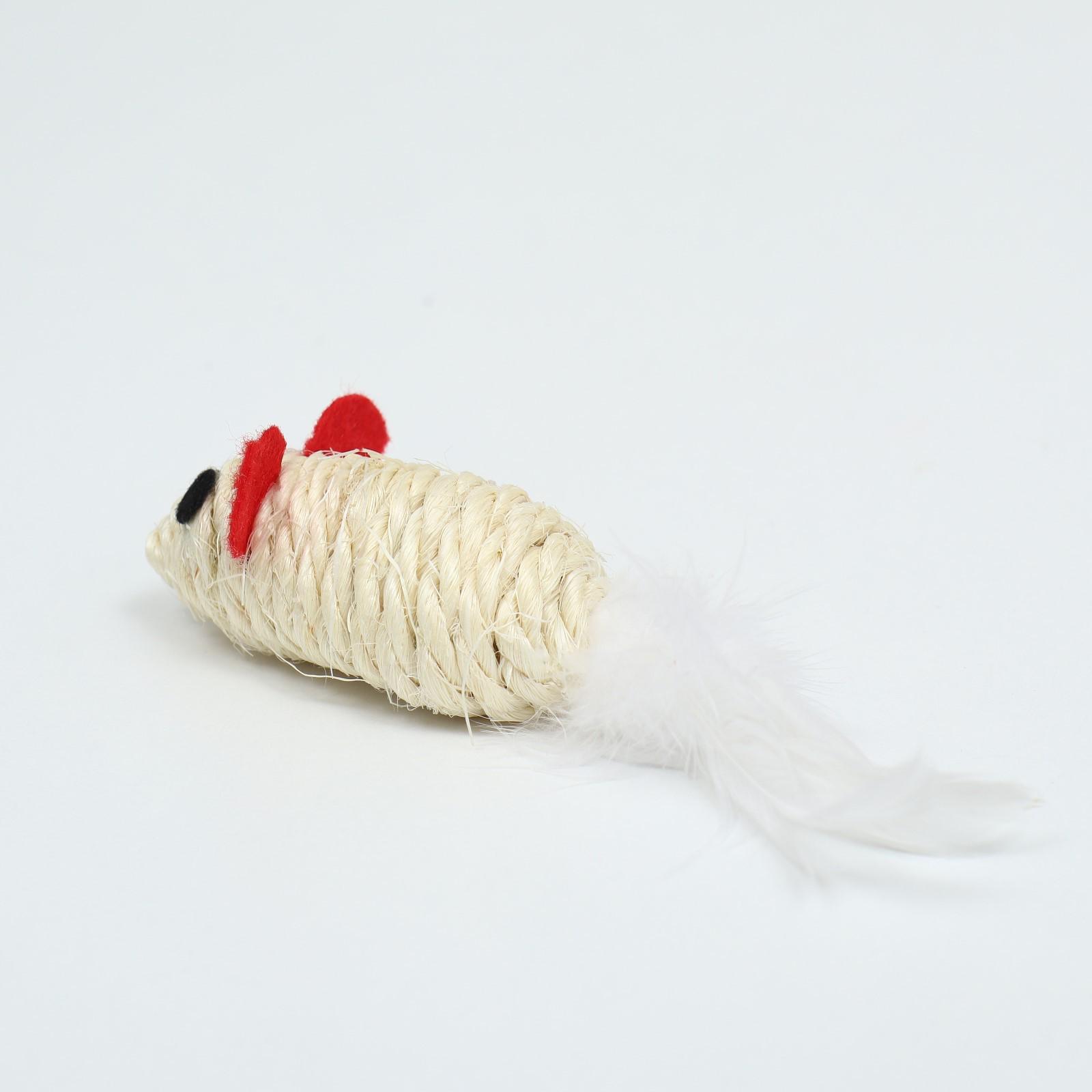 Игрушка для кошек "Мышь сизалевая малая" с меховым хвостом, 5,5 см, белая