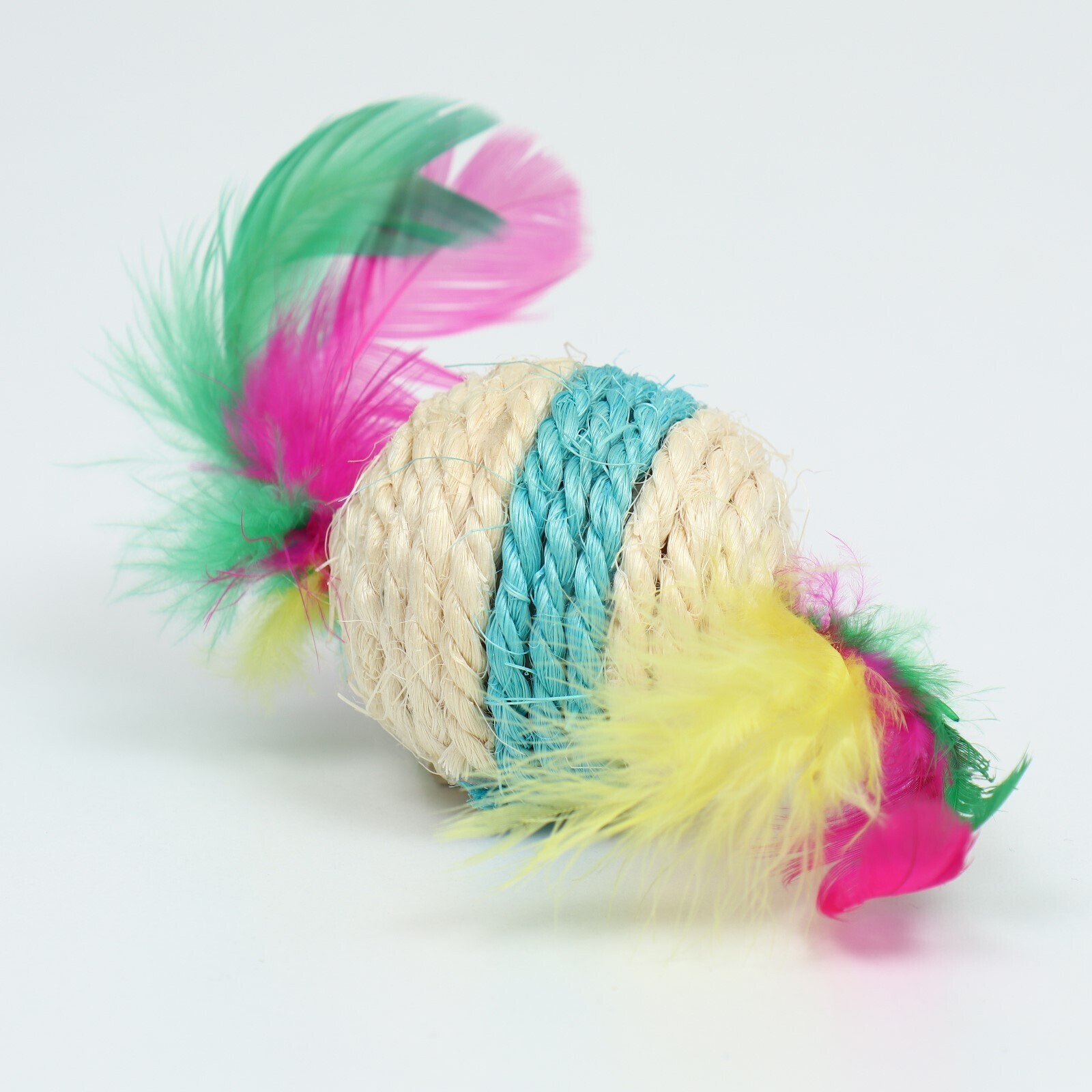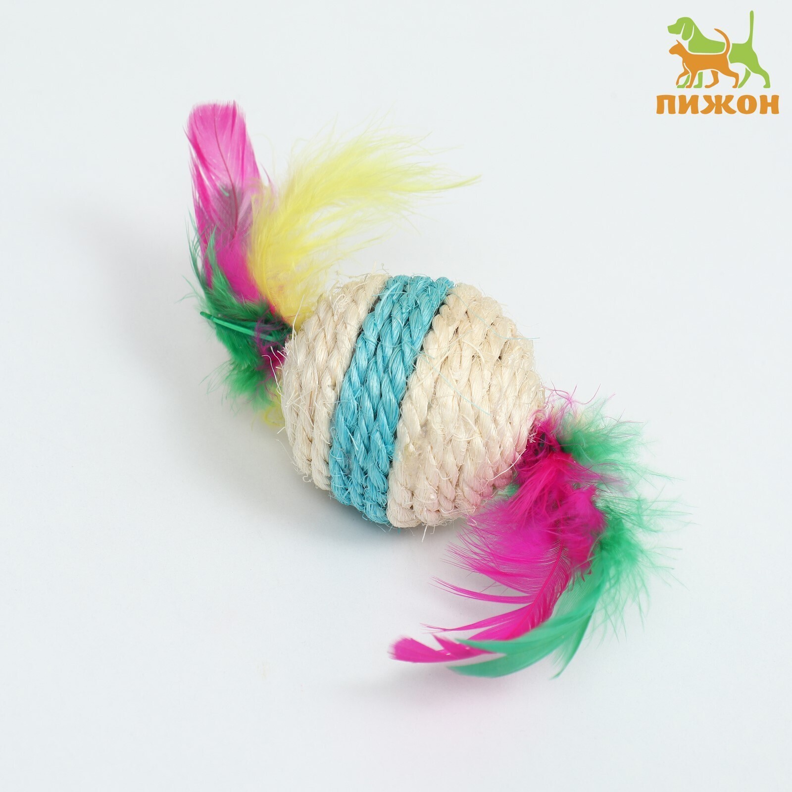 Мяч сизалевый с перьями "Леденец", 5 см, белая/синяя