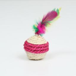 Мяч сизалевый с перьями "Леденец", 5 см,белая/розовая