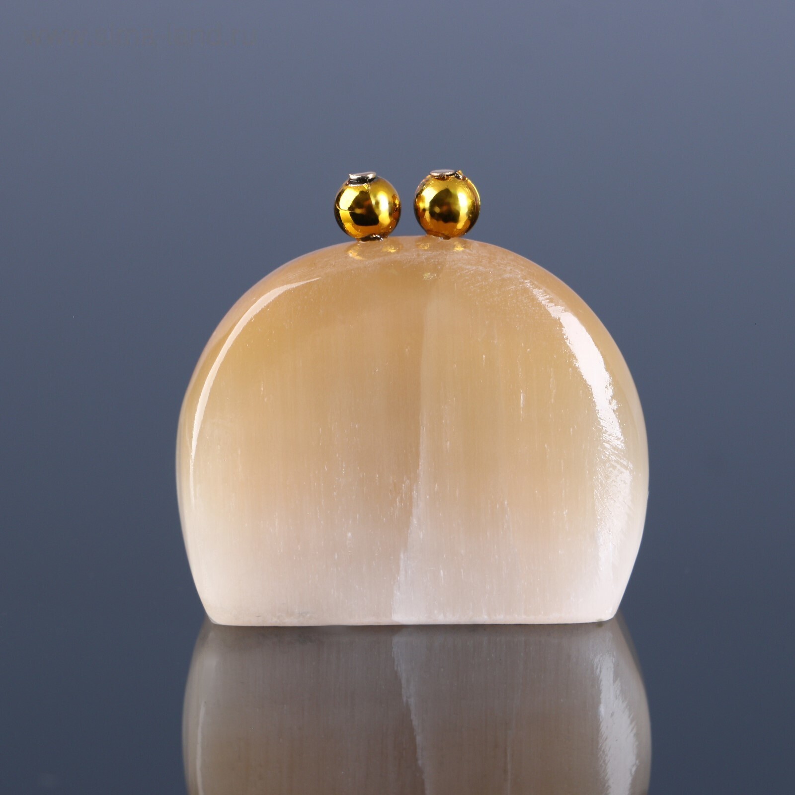 Селенит — это материал, который относится к разновидности гипса, жёлто-розового цвета с шелковистым блеском. Внутренние волокна расположены плотно, это даёт эффект «кошачьего глаза». Изделия из селенита завораживают игрой света, нежными тонами и хрупкостью. При прикосновении есть ощущение исходящей энергии.