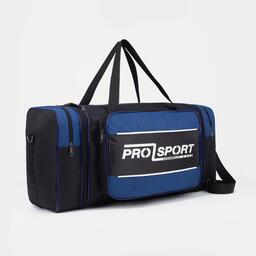 Сумка дорожная на молнии, с увеличением, 3 наружных кармана, длинный ремень, цвет чёрный/синий