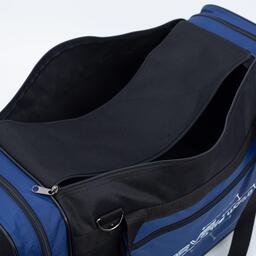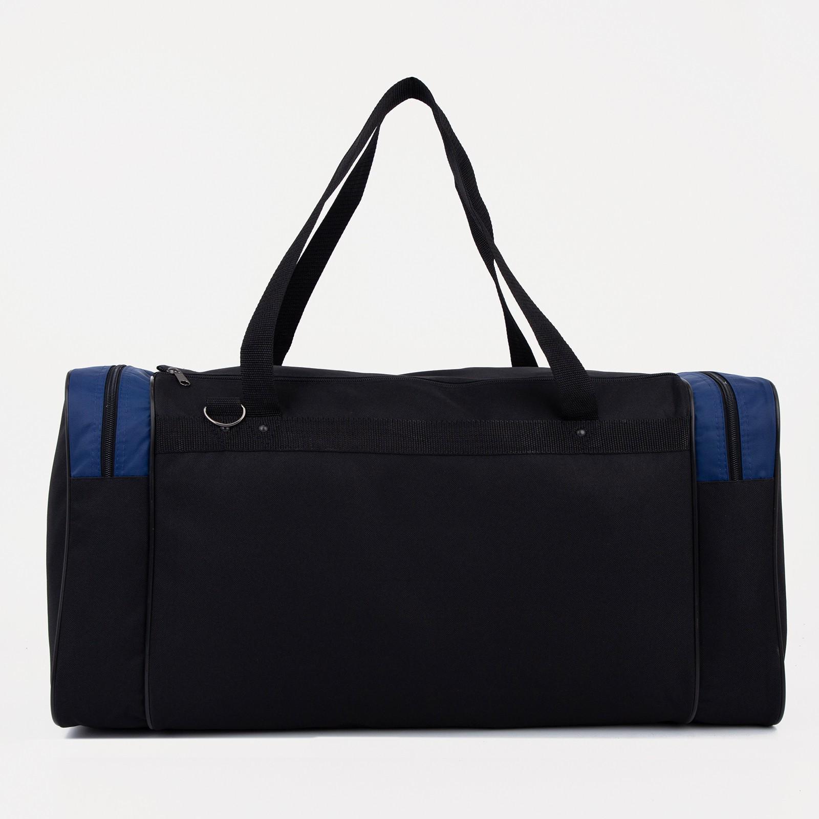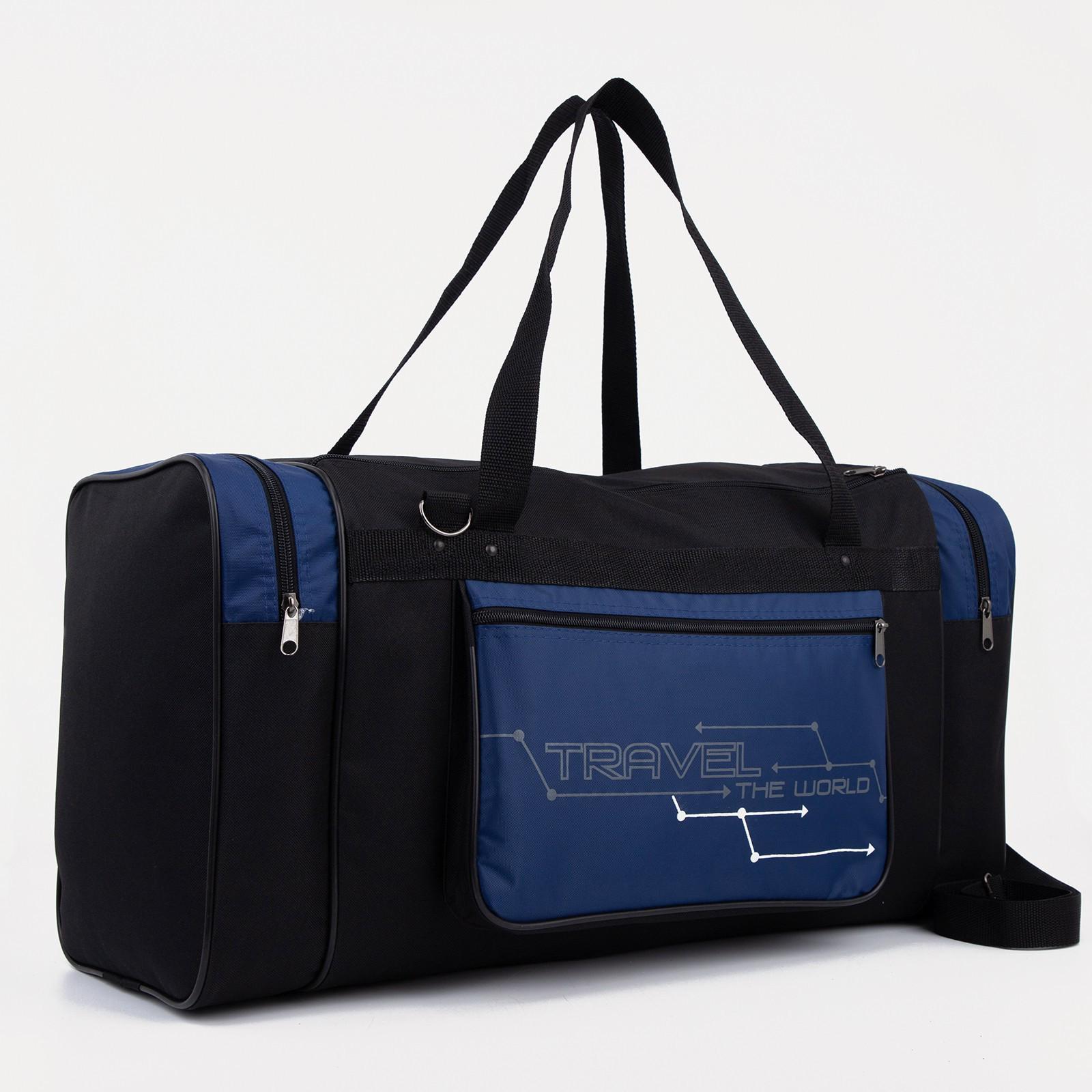 Сумка дорожная на молнии, 3 наружных кармана, длинный ремень, цвет чёрный/синий