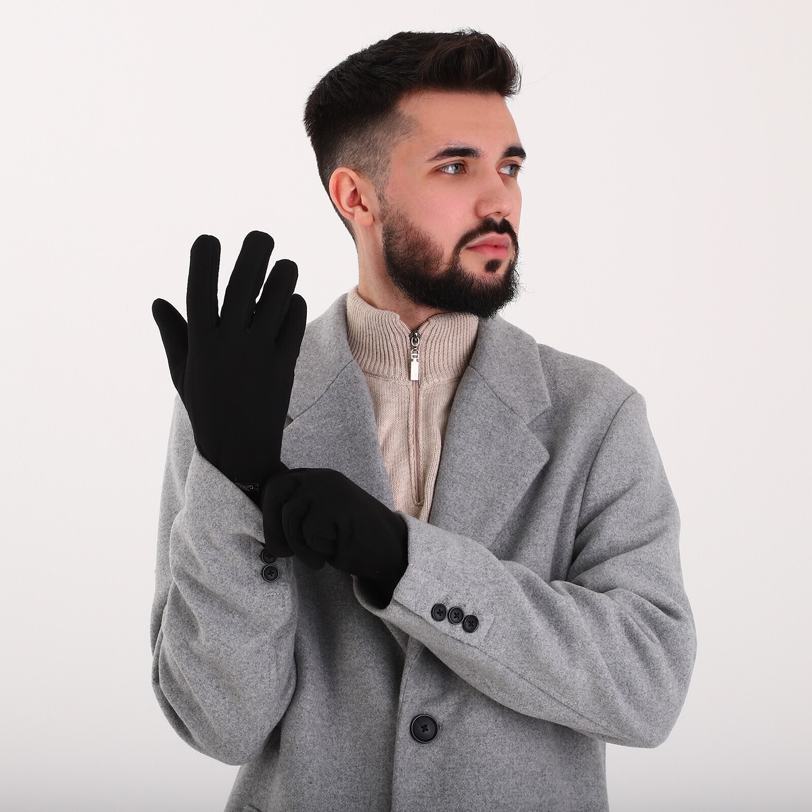 Перчатки мужские, безразмерные, утеплитель искусственный мех, цвет черный