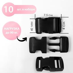 Фастекс 40 мм, нагрузка до 90 кг, 10 шт, цвет чёрный