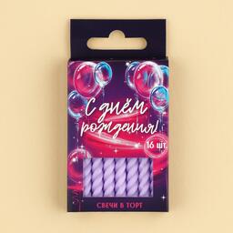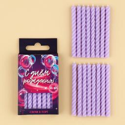 Набор свечей в торт «С днем рождения», сиреневые, 16 шт., 0,5 х 6,5 см