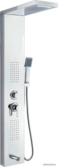 - Комплектация верхний душ, штанга, ручной душ (лейка), держатель лейки, шланг, смеситель, излив для ванны, боковой душ