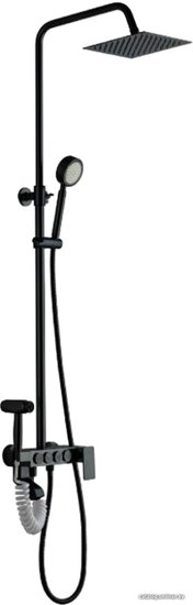 - Комплектация верхний душ, штанга, ручной душ (лейка), держатель лейки, шланг, смеситель, излив для ванны, гигиенический душ (лейка)