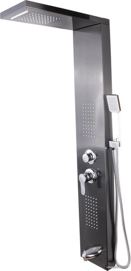 • Комплектация верхний душ, ручной душ (лейка), держатель лейки, шланг, смеситель, излив для ванны, боковой душ