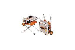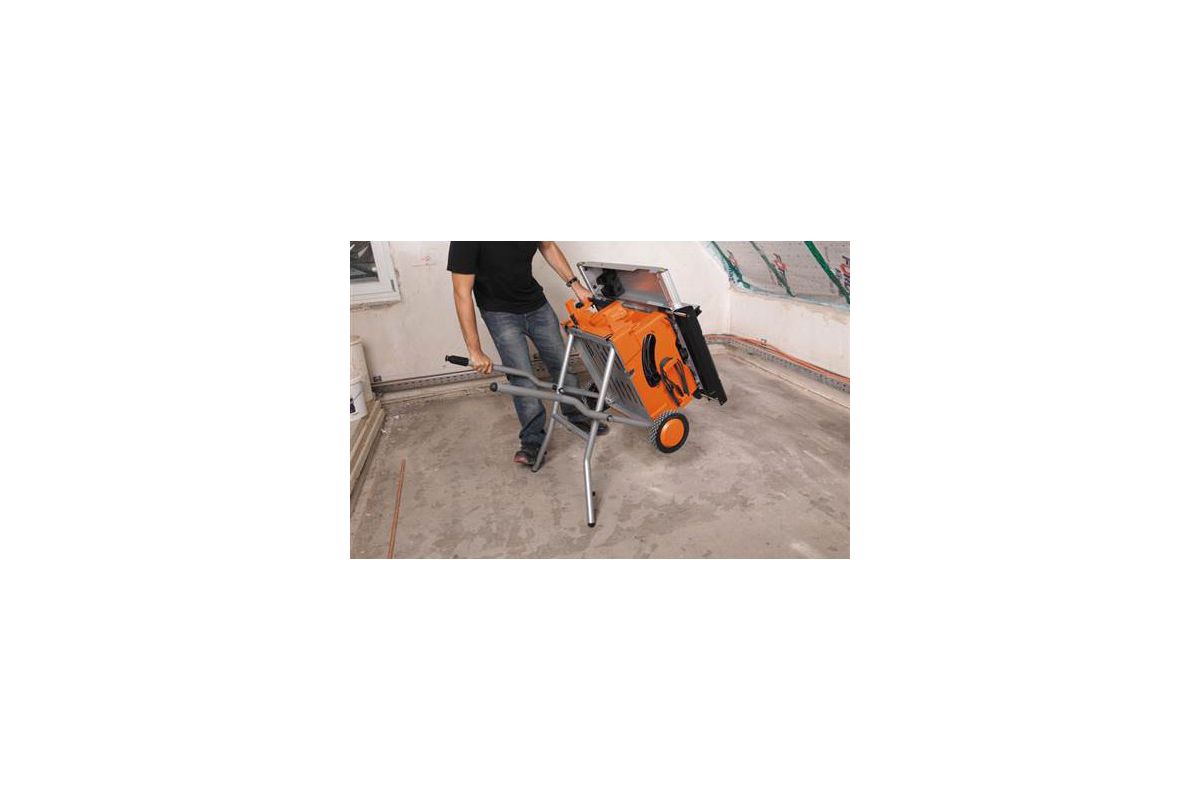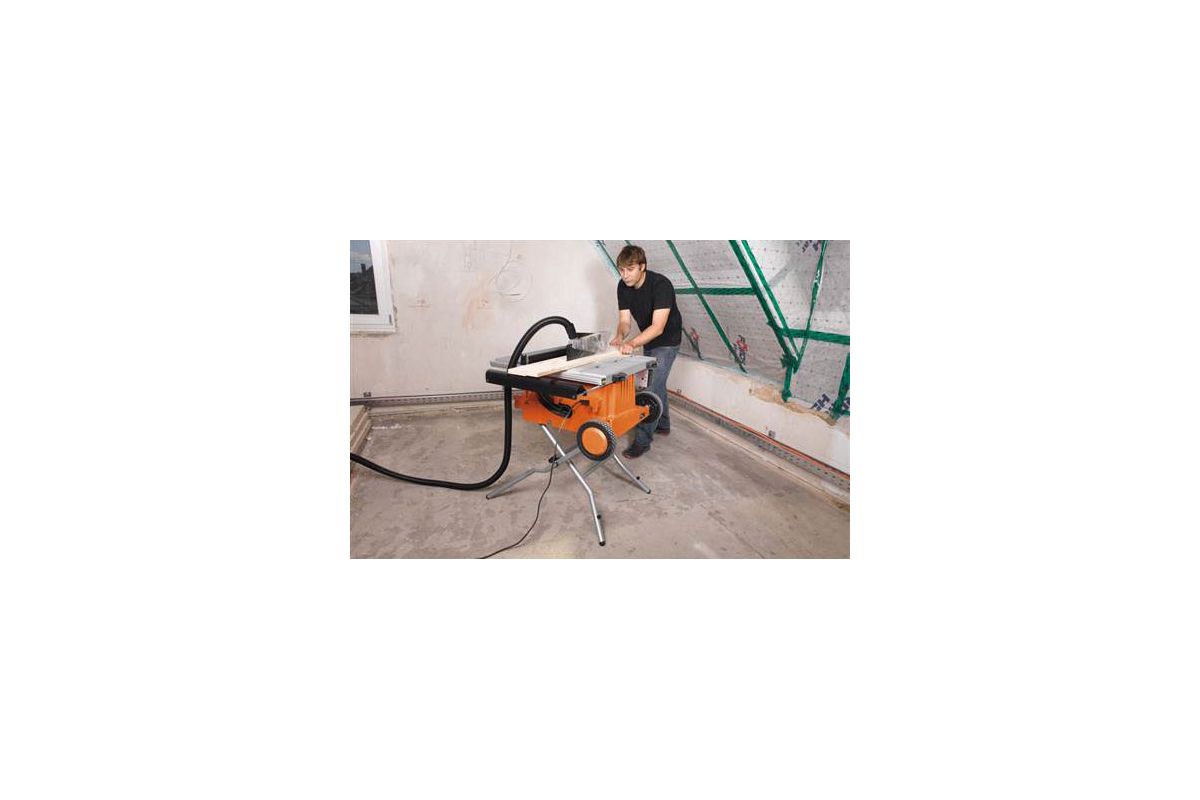 Станок AEG TS 250 К легко монтировать благодаря складывающимся опорам. А наличие колес делает его вполне транспортабельным агрегатом. Пильную часть станка можно наклонять на 45 ° для выполнения сложных стыковочных углов. Угловой упор позволяет пилить под углом, не прибегая к дополнительной разметке. Встроенные раздвижные упоры могут увеличивать поверхность до 64 5 мм, позволяя распиливать более длинные элементы. Точки фиксации параллельной направляющей позволяют осуществлять продольный и поперечный распил. Гладкость рабочей поверхности стола позволяет легкий проход заготовок и надежность процесса в целом. Для защиты оператора предусмотрен специальный кожух. Можно подключить штуцер для очистки рабочей поверхности стола.