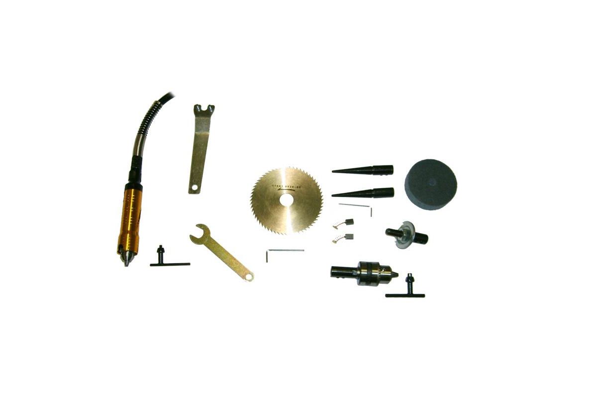 - Гибкий вал с гравером с 3-х кулачковым патроном 0,3-6,5мм 1шт;