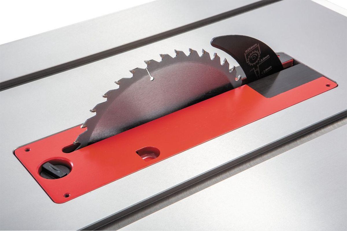 Внешний дизайн хорошо проработан: для всех, часто используемых принадлежностей (параллельный и угловой упоры, защитный кожух, расклинивающий нож, ключ для фланца), предусмотрены кронштейны.