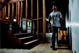 - Стальной каркас защищает пилу от ударов и падений на строительной площадке;