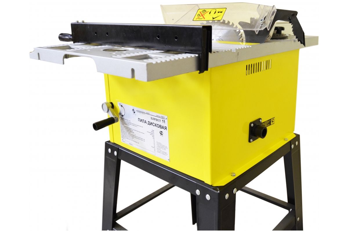 Станок распиловочный корвет 11 (90110) – универсальный дисковый станок, предназначенный для распила (продольного, поперечного) заготовок из всевозможных пород древесины. Функциональные возможности оборудования предусматривают легкую смену основного рабочего диска на специальные диски, позволяющие осуществлять распил ламинированных панелей, заготовок из пластика, алюминиевого профиля и прочих материалов. Корвет 11 оснащен электромагнитным пускателем, обеспечивающим безопасную работу оператора, а стол распиловочного станка позволяет произвести установку электрического фрезера и маятниковую пилу (электролобзик).