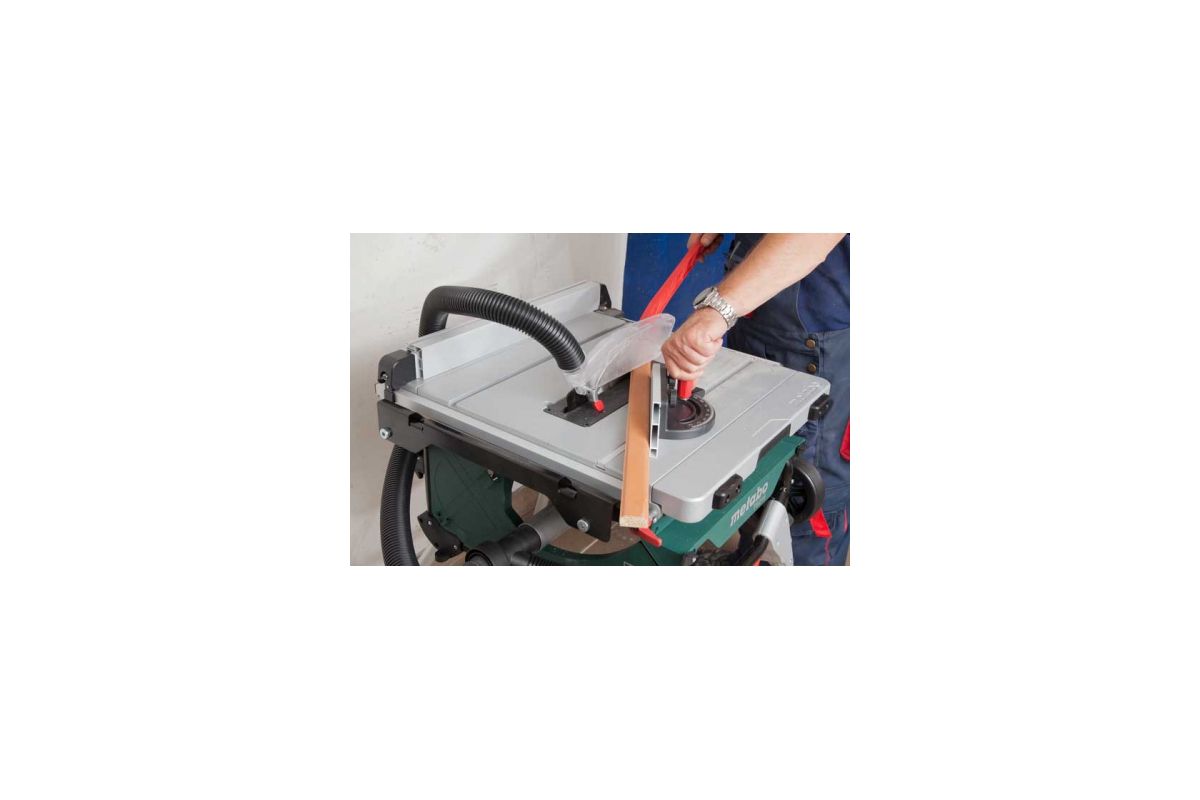 Циркулярный станок METABO TS 216 оснащен электрическим двигателем мощностью 1500 Вт, который питается от бытовых сетей 220В. На корпусе - ролики и удобная ручка для перевозки и переноса. Во время работы инструмент опирается на 4 устойчивые раскладные ножки. На корпусе станка есть крепления для всех разборных деталей во время транспортировки. Рабочий стол станка оборудован параллельным упором с двойным зажимом и двухсторонней фиксацией. Функция блокировки шпинделя позволяет определить и зафиксировать точный угол наклона пильного диска. Модель рассчитана на использование пильного диска диметром 216 мм и диаметром посадочного отверстия 30 мм. Глубина реза достигает 63 мм.