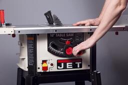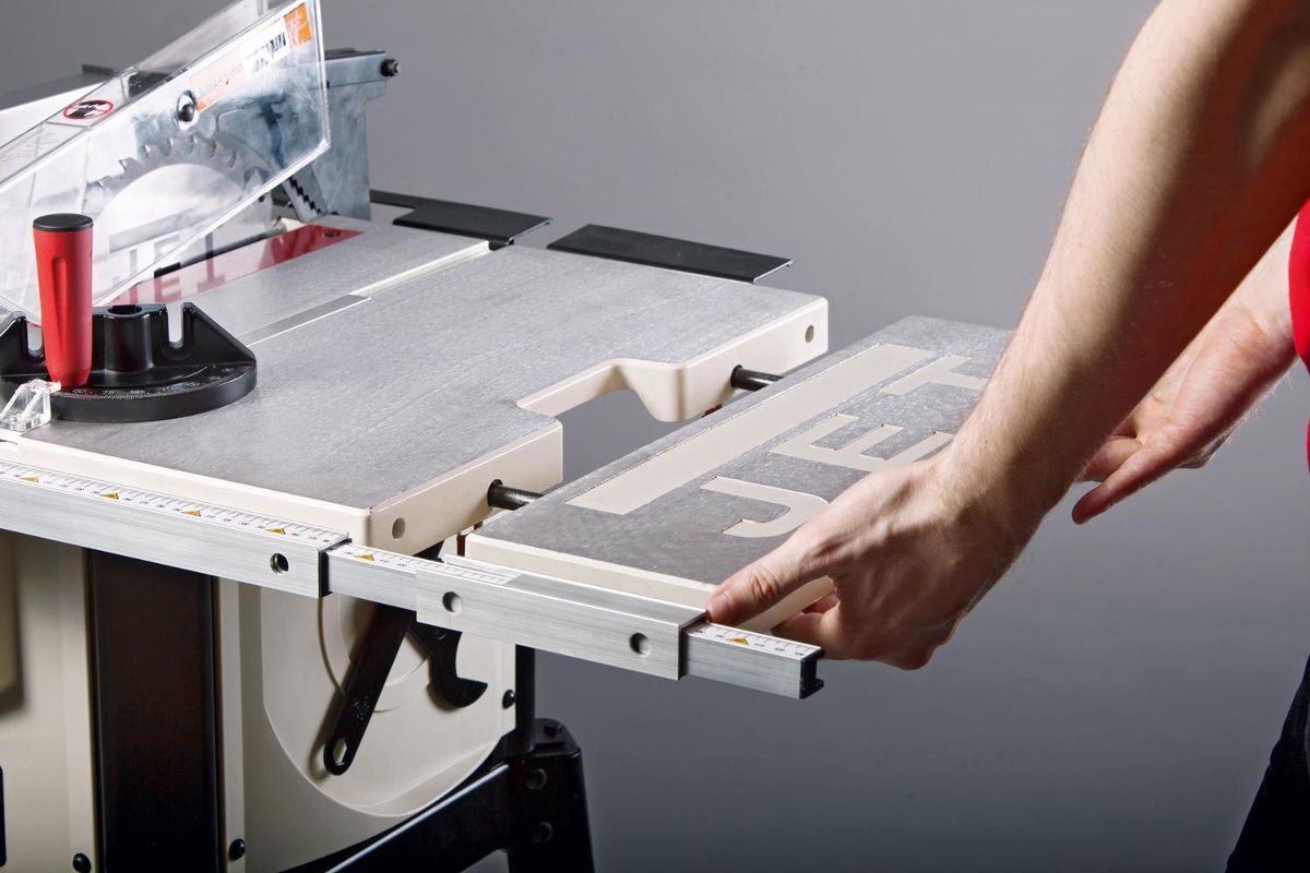 JET JBTS-10 – один из немногих циркулярных станков в своем классе с выдвижными боковыми столами и точно регулируемым параллельным упором. Характеристики: мощность – 1,7 кВт; диметр диска – 254 мм; скорость распила – 5000 об/мин; глубина пропила – 76 (угол 0о) и 64 мм (угол 45о); ширина заготовки – до 600 мм. Преимущества: система быстрого торможения; плавно регулируемый наклон диска; алюминиевый стол; съемный удлинитель рабочей зоны; раздвижной расширитель стола; возможность подключения пылесоса.
