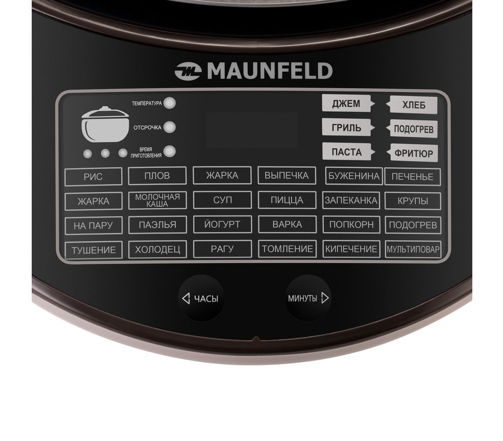 Панель управления: одно нажатие кнопки с нужным названием программы – и мультиварка приготовит все, как вы хотите. Мощность 1600 Вт позволит быстро приготовить блюдо, не расходуя много электроэнергии. Благодаря функции отложенного старта можно запрограммировать мультиварку так, чтобы она приготовила полезный завтрак или здоровый ужин к назначенному времени. Звуковой сигнал оповестит о завершении программы приготовления. В мультиварке предусмотрены 26 автоматических программ приготовления. Программа Мультиповар позволит изменять настройки времени и температуры по своему вкусу. Для удобства в мультиварке имеются функции автоподогрева (с возможностью его отключения), а так же разогрева готовых блюд. Удобная поворотная ручка на стеклянной крышке предусмотрена для правшей и левшей. Стеклянная крышка позволяет наблюдать за готовностью блюд не открывая ее. Прочная 5 литровая чаша мультиварки устойчива к воздействию высоких температур. Чаша имеет антипригарное керамическое покрытие, благодаря чему готовить можно с минимальным количеством масла. Благодаря новейшим разработкам, продукты в процессе приготовления сохраняют питательные вещества и витамины. Лопатка для перемешивания работает в соответствии с выбранной программой и автоматизирует процесс приготовления. Широкий диапазон температур (от 35°С до 180°С) для приготовления различных блюд. Широкая комплектация для удобства приготовления (вращающаяся лопатка для перемешивания, паровая полочка, мерный стакан, силиконовая лопатка, ложка, половник). Доставать из мультиварки горячую чашу стало еще удобнее и безопаснее благодаря ручкам из жаропрочного пластика. В комплекте: вращающаяся лопатка для перемешивания, паровая полочка, мерный стакан, силиконовая лопатка, ложка, половник.