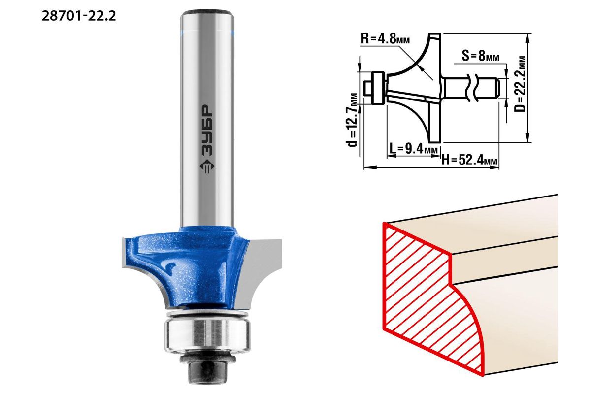 Фреза ЗУБР 28701-22.2 кромочная калевочная №1 d= 22.2мм дл.-9.4мм рад.-4.8мм хв.-8мм d-12.7мм
