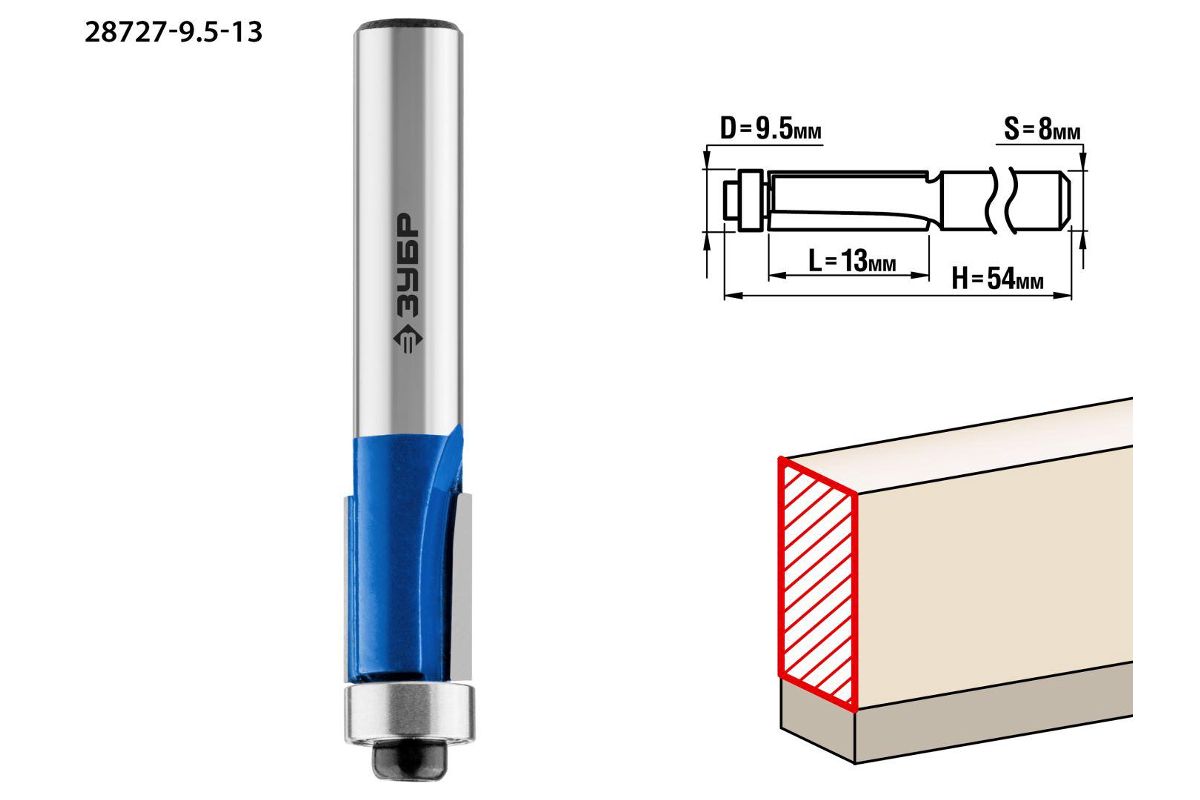 Фреза ЗУБР 28727-9.5-13 кромочная с нижним подшипником d= 9.5мм дл.-13мм хв.-8мм d-9.5мм