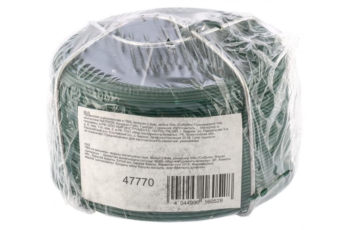 Проволока вязальная СИБРТЕХ 47770 0.9мм/50м с пвх покрытием зеленая