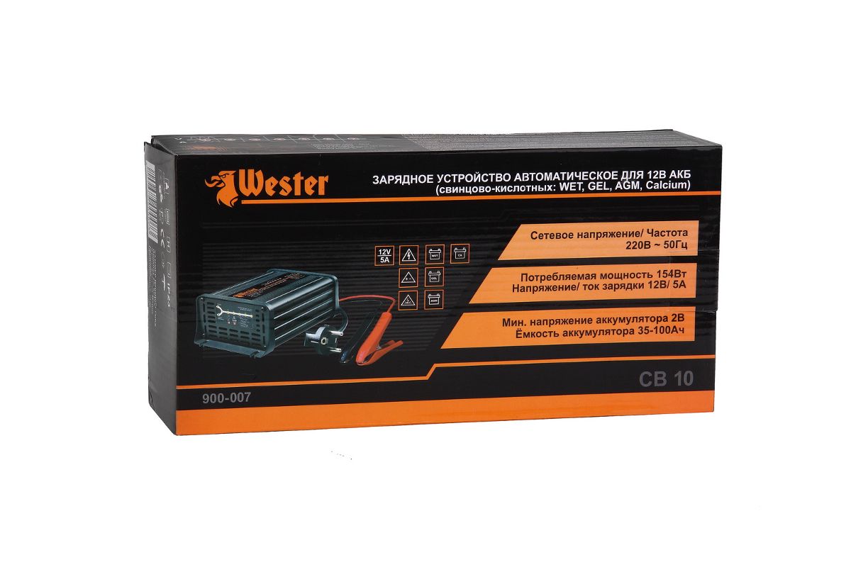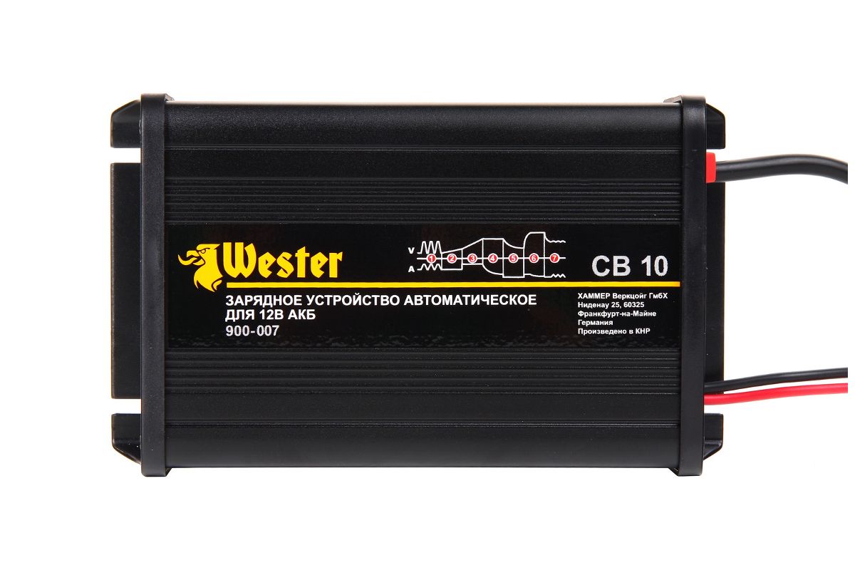 WESTER СВ10 – универсальное устройство для зарядки свинцово-кислотных аккумуляторов 12В. Подходит для батарей любого типа: с жидким электролитом, гелевых, AGM, герметичных, необслуживаемых, кальциевых и т.д.
