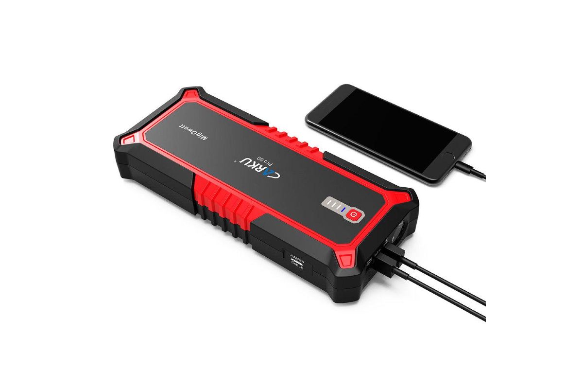 CARKU PRO-60 – портативное пусковое устройство из новой, продвинутой линейки бренда CARKU. Подходит для бензиновых двигателей объёмом до 8 л. и дизельных – до 5 л.