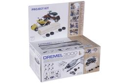 DREMEL 3000 X-MAS 2013 — компактная мини-дрель для разнообразных работ. Чаще всего употребляется для гравировки, резки, сверления, абразивной обработки и т.д. Мощность 130 Вт позволяет развивать скорость до 10000-33000 об/мин. В комплекте — 45 насадок; заготовки для изготовления деревянных игрушек; гибкий вал; шлифовальная платформа; приспособление Comfort Guard; рукоятка для точных работ.