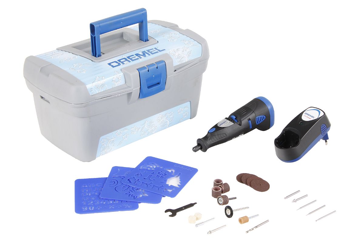 БЕСПРОВОДНОЙ инструмент Dremel 7,2 В очень мобильный и может быть использован как на улице, так и внутри помещения. Этот инструмент обладает оптимальной производительностью при выполнении небольших творческих проектов и домашних работ. Комфорт и простота использования делают этот инструмент прекрасным выбором для резьбы, шлифования, резки, абразивной обработки и прочих работ со всеми типами материалов.